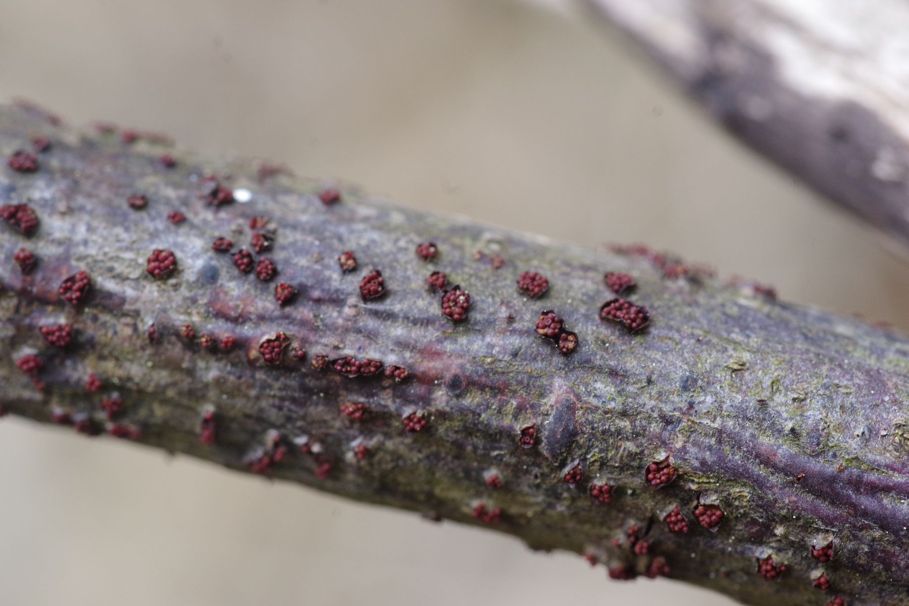an Nectria cinnabarina glaube ich eigentlich nicht, aber die Richtung sollte schon passen, und in der Gattung und in der Nachbarschaft - über Neonectria war ich auch gestolpert - gibt es noch mehr rotes Zeug. Ich werde da sicher bei Gelegenheit noch mal vorbeikommen.