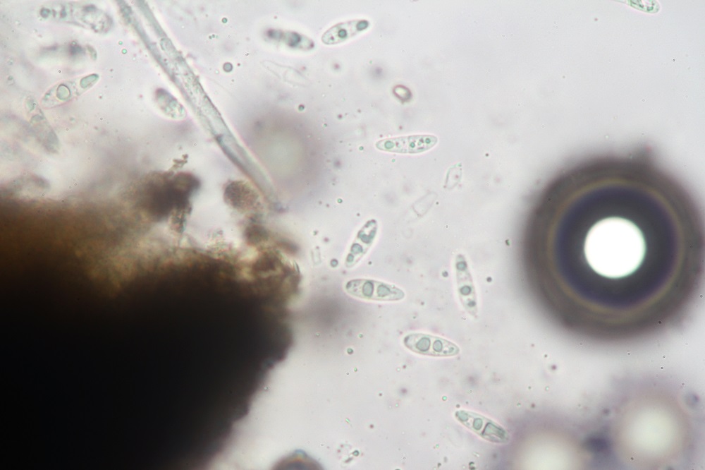 Die Sporen sind leider nicht mehr vital, aber die grobe Sporengröße (20-23,5 x 6-7 Mikrometer) passt zu der S. rimosa.
