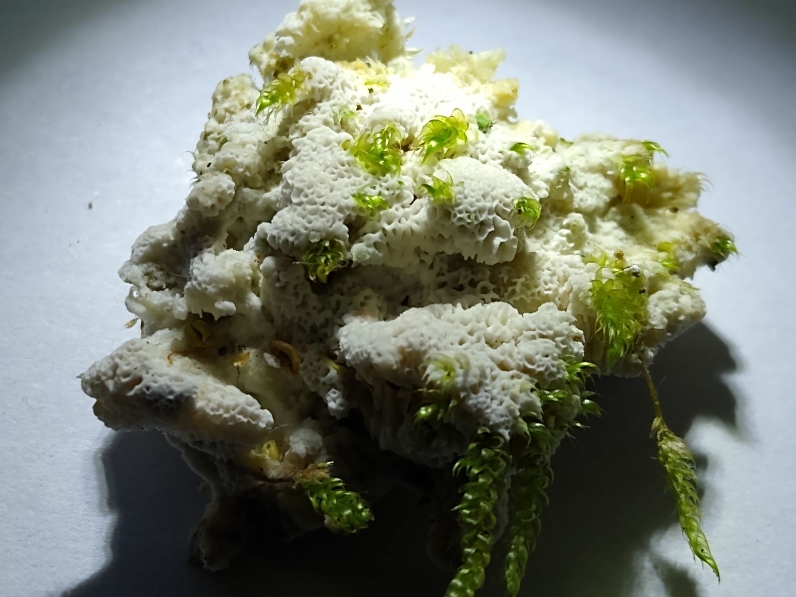 Bild 1 Weiße Kruste auf Moos entpuppt sich als Porling