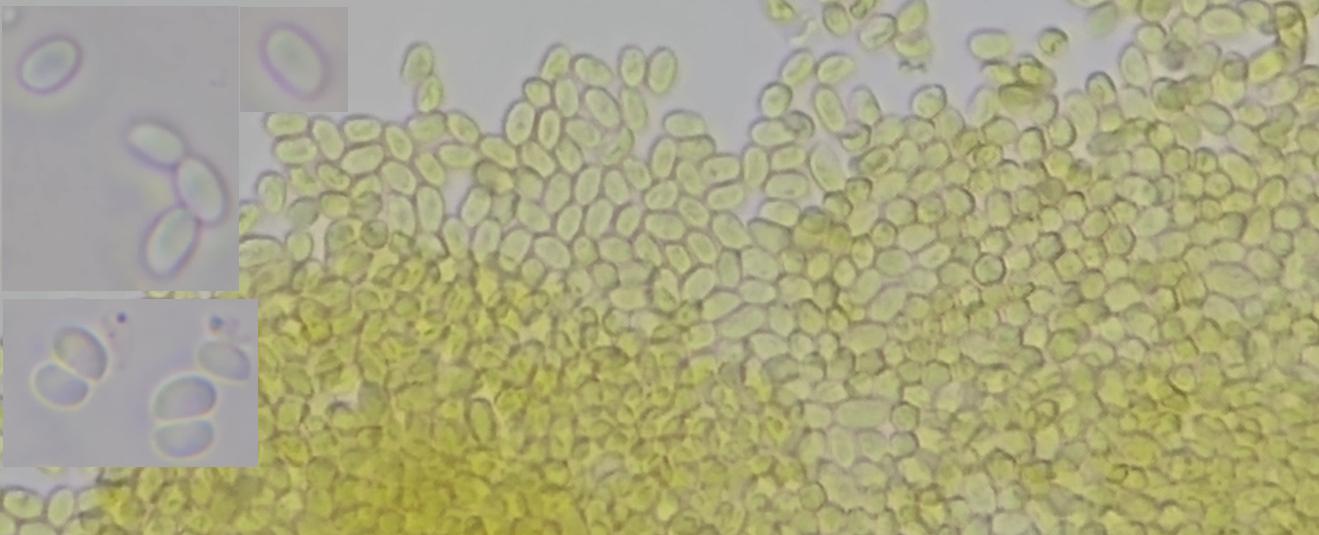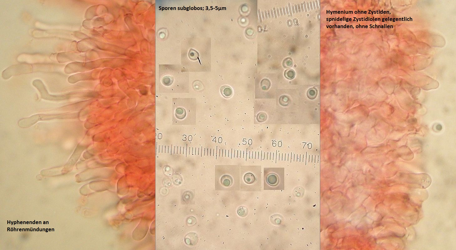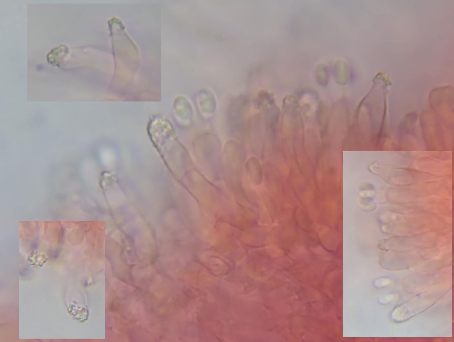 Die Sporen reagieren nicht in Lugol (IKI-), sind inamyloid, nicht dextrinoid