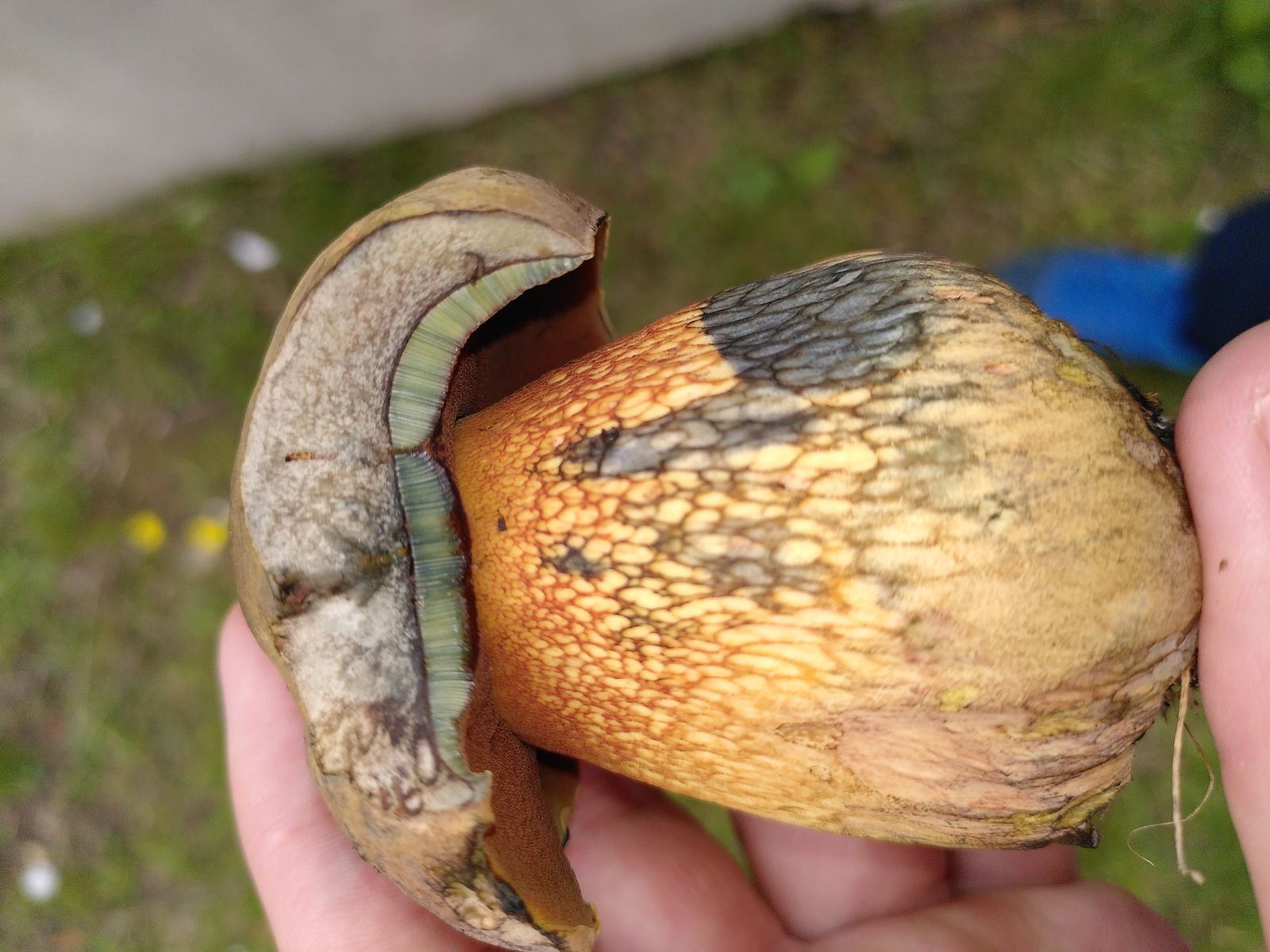 Ich habe gestern zufällig diesen Fruchtkörper neben einem Friedhof am Waldrand entdeckt. Da ich mich noch nicht lange mit Pilzen beschäftige, bin ich was Röhrlinge angeht noch nicht besonders erfahren. Die Röhrenenden laufen bei leichtem Druck schnell dunkel an, das rote Netz ist mMn gut zu erkennen. Der Geruch war pilzig, vlt. leicht modrig. Ich habe den Fruchtkörper stehen gelassen, habe also keine Schnittbilder oder. Ä. zur Verfügung.