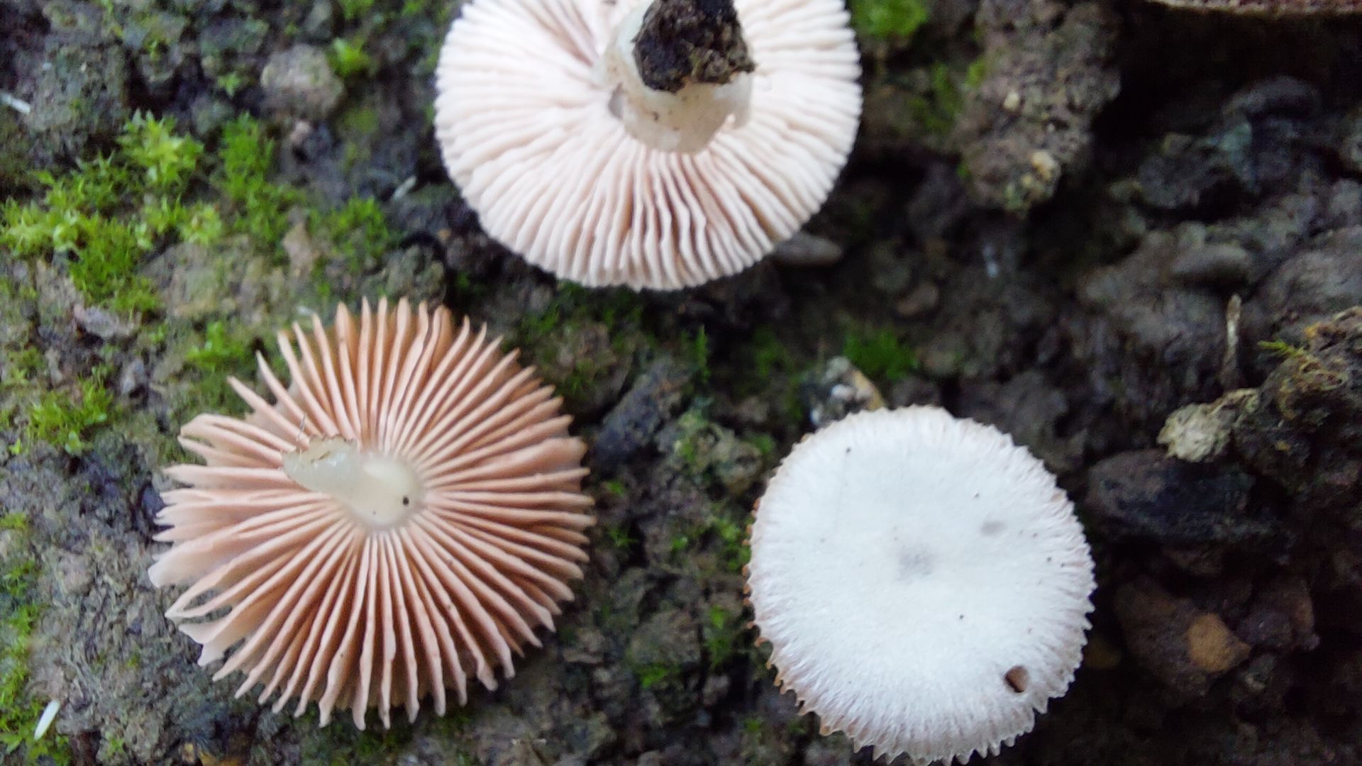 Hat jemand einen Tipp, um welche Art es sich handeln könnte? Die Pilzhüte messen so ca. 2 bis 4 cm im Durchmesser.