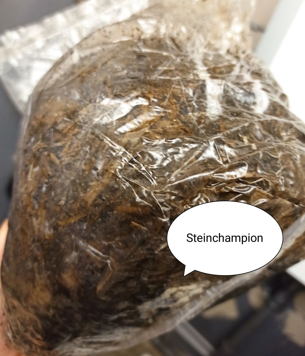 Beim Steinchampion Block sehe ich am Boden etwas weißes Myzel.Hier war aber auch etwas pferdemistgranut und auch mehr vom altem myzel mit drin.