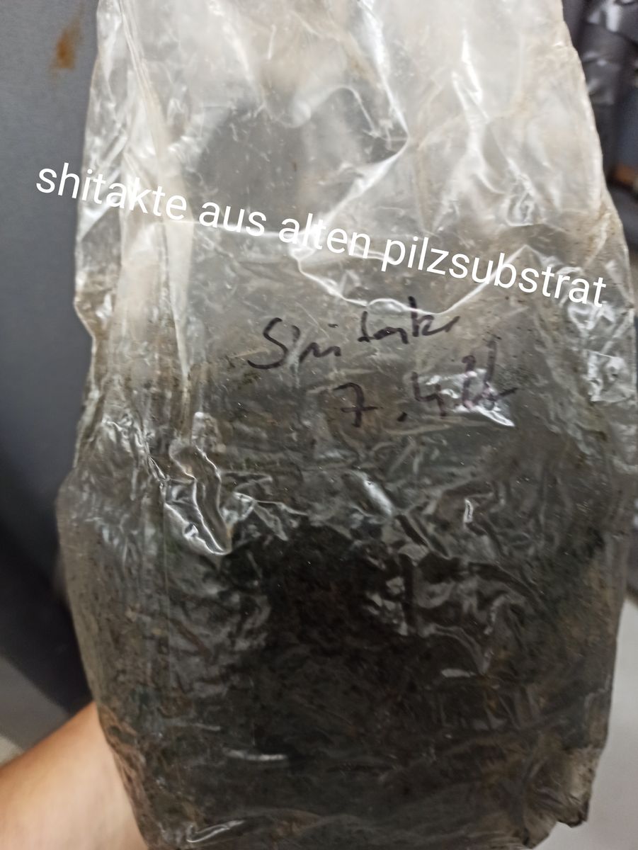 Ich habe versucht meinen neuen substratblock mit altem Pilz Myzel aus einem alten Block zu beimpfen. Beim Austernpilz hat es geklappt, beim Kräuteseitling und shittake funktioniert es leider weniger. Steinchampion Mal sehen.