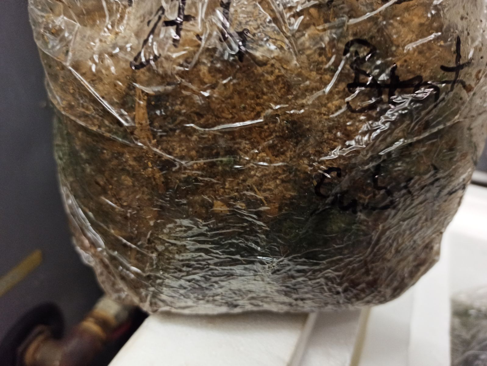 Der Substratblock besteht aus Stroh, buchenspähnen, Weizenkleie, Kaffe,Gips und Kalk und wurden 90 min im Schnellkochtopf gelegt,dann verwcheisst und max 3 Tage später beimpft.