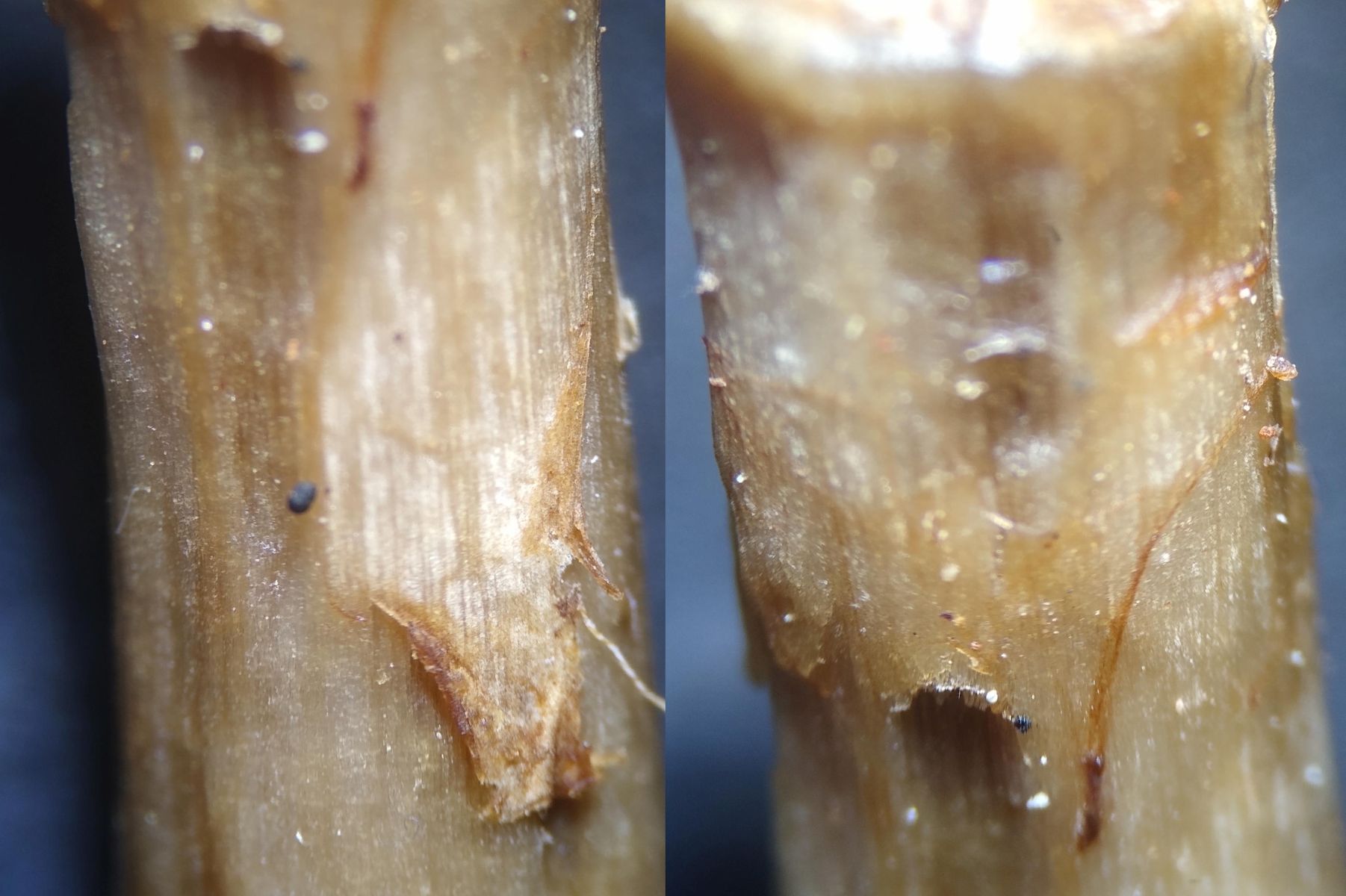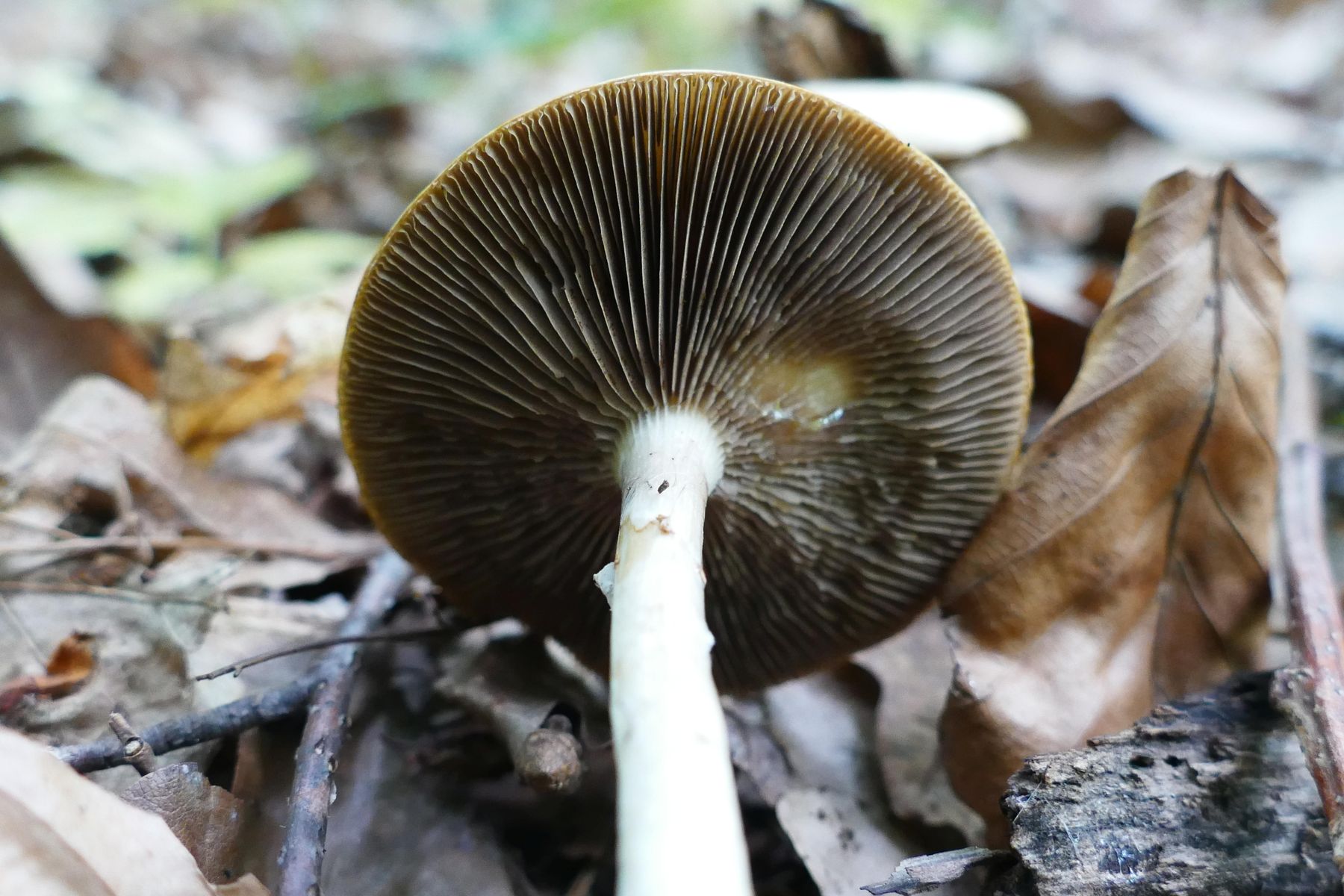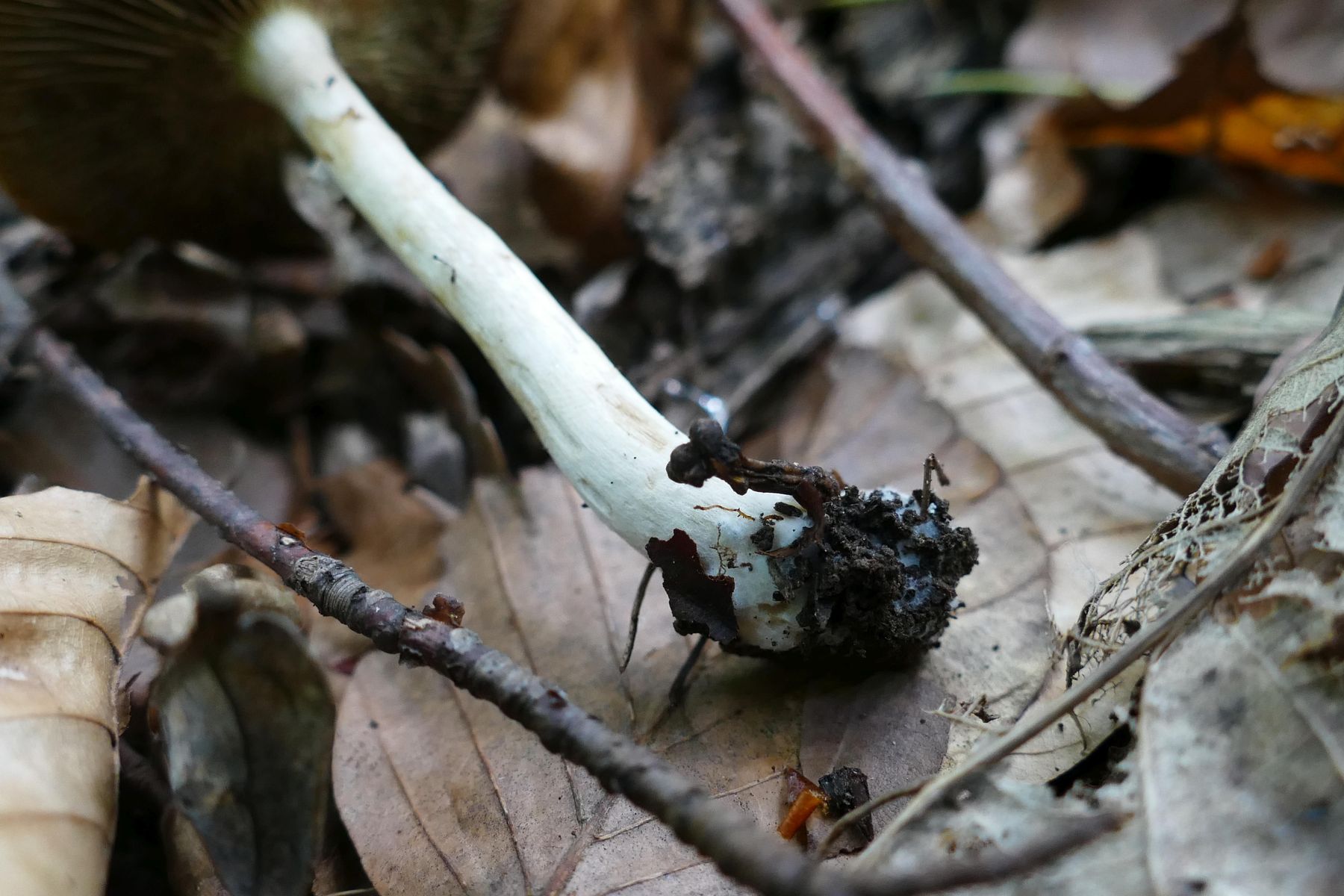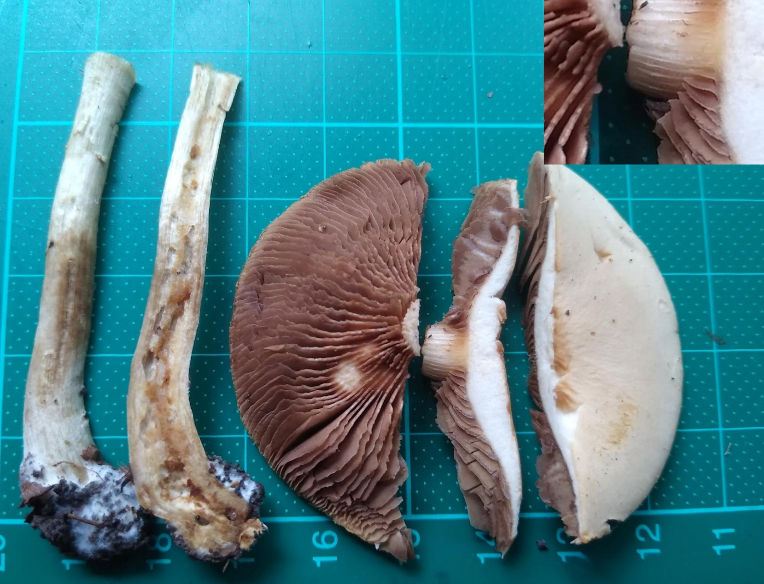 Bild 2 Glatter Stiel mit schwachen Velum-Überresten (?), Lamellen herablaufend.