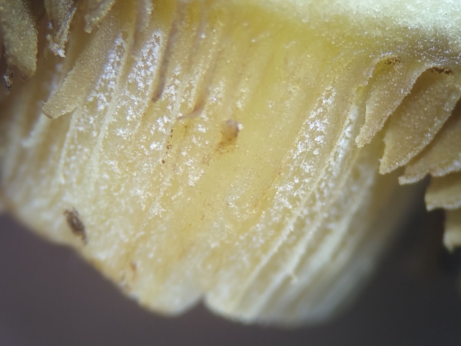 An den Lamellen lassen sich dicke, ölgefüllte (leicht gelbliche) Zystiden mit 1(-2) fingerartigen Ausstülpungen erkennen: