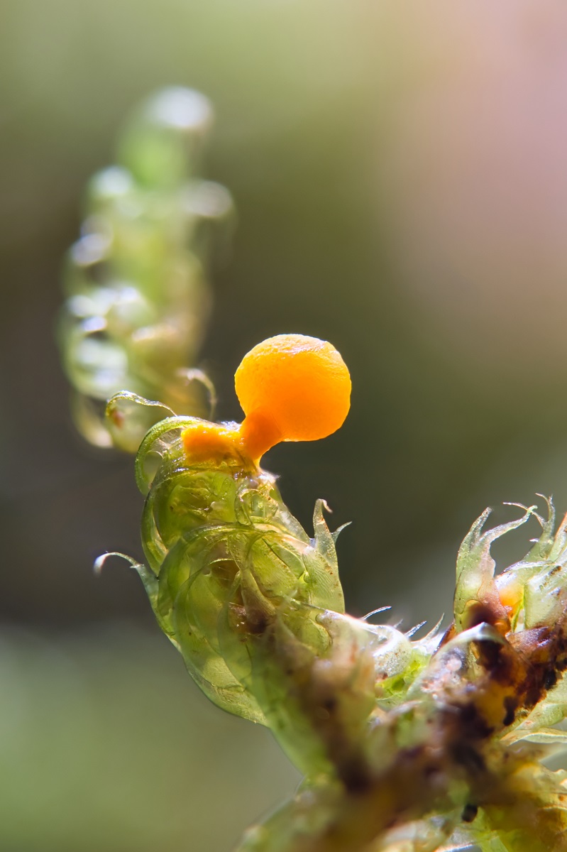 gestern habe ich einen Schleimi gefunden, der auf eine Bestimmungshilfe hofft. Er wächst auf Moos, das wiederum auf einem Fichtstubben in einem Mischwald wächst.