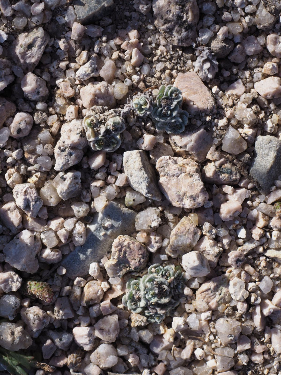 diese kleinen Asketen haben mich fasziniert- zischen Sand und Geröll in der prallen Sonne fühlt sich das Zwergedelweiß (Filago pygmaea) offenbar trotzdem ganz wohl
