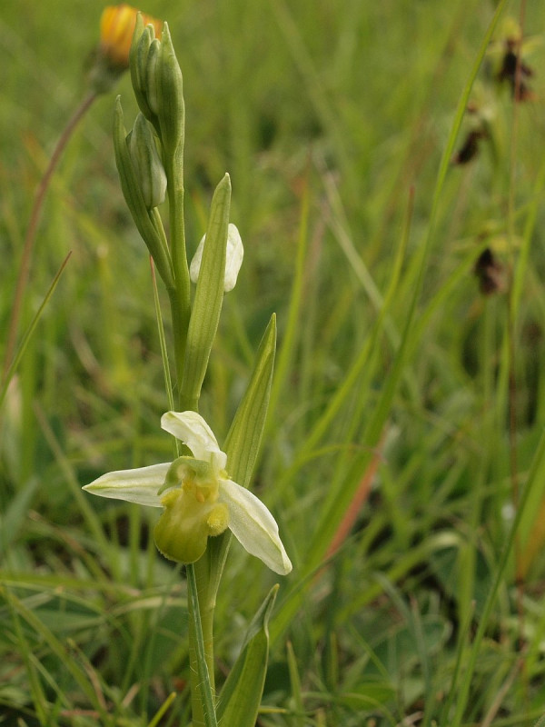 Die sehr seltene apochrome Form der Bienenragwurz (Ophris apifera)