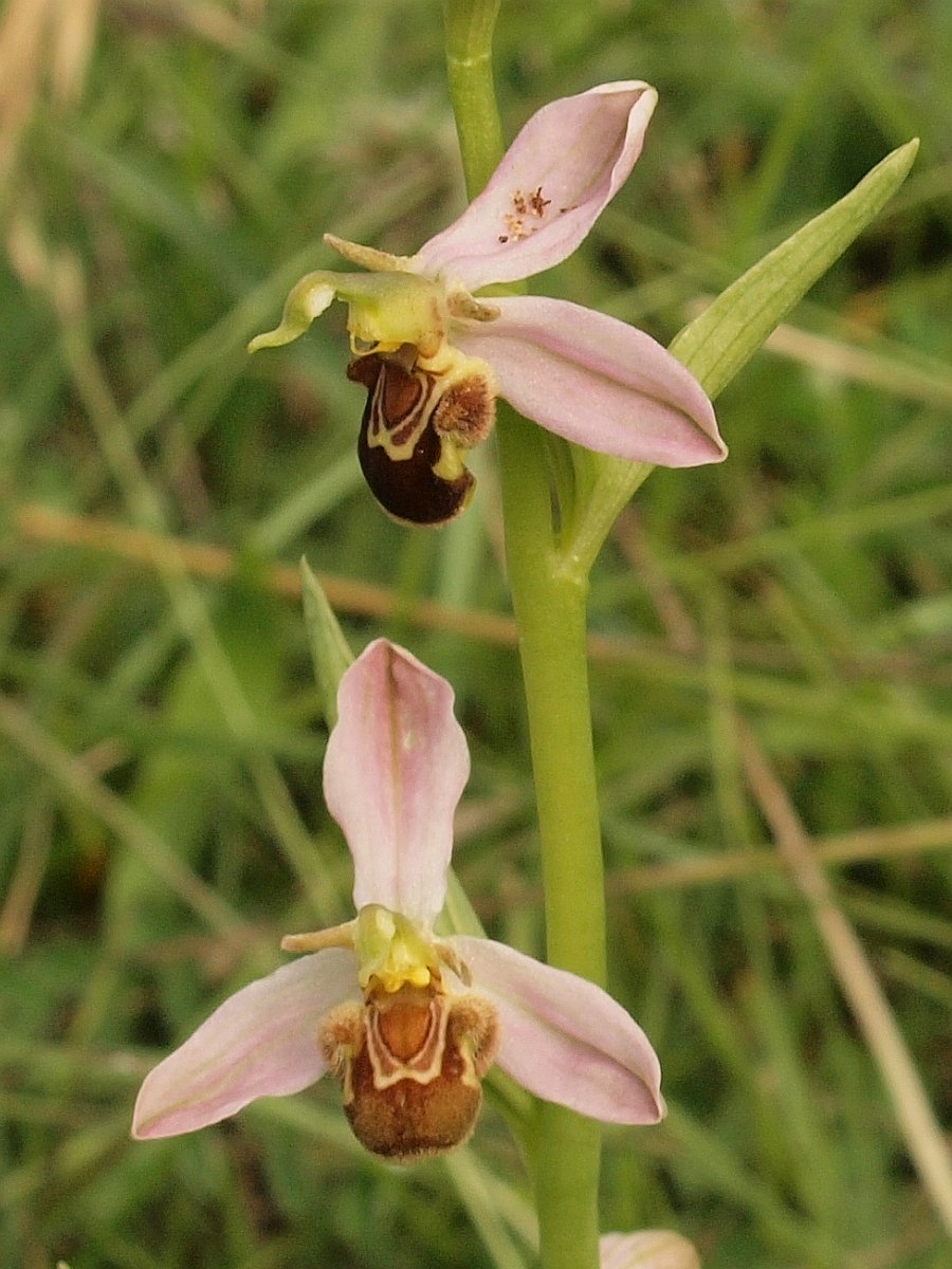Die sehr seltene apochrome Form der Bienenragwurz (Ophris apifera)
