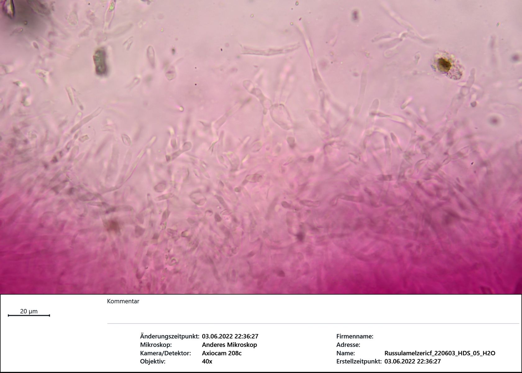 HDS aus meiner Sicht, wenn mit anfärbbaren Pileozystiden dann extrem schwach, blass gräulich (kaum abgesetzt); hier in SV bei 400fach