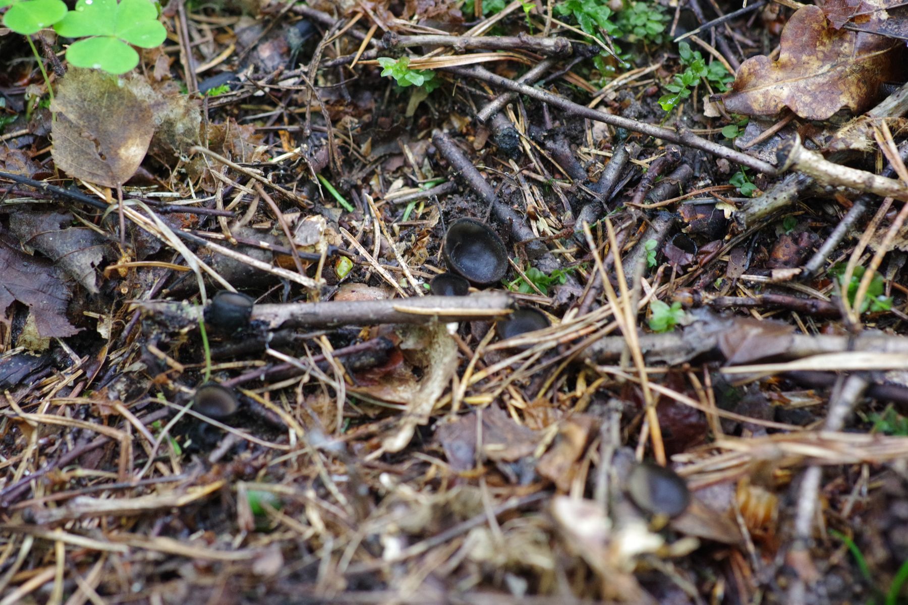 Ich denke am ehesten an Pseudoplectania melaena agg. Bei Urnula hatte ich auch nachgeschaut, U. craterium steht noch auf meiner Wunschliste. Die ist aber viel größer und längst durch. Prinzipiell könnte die Bodenbeschaffenhiet passen, wenngleich der sonst nur aus dem sandigen Osten gemeldet wird. Vielleicht kommt noch Urnula hiemalis in Frage, aber das scheint auch eher ein Mysterium als ein gut bekannter Pilz zu sein. 2011 wurde der in Estland gefunden, allerdings schon im April und deutlich größer.