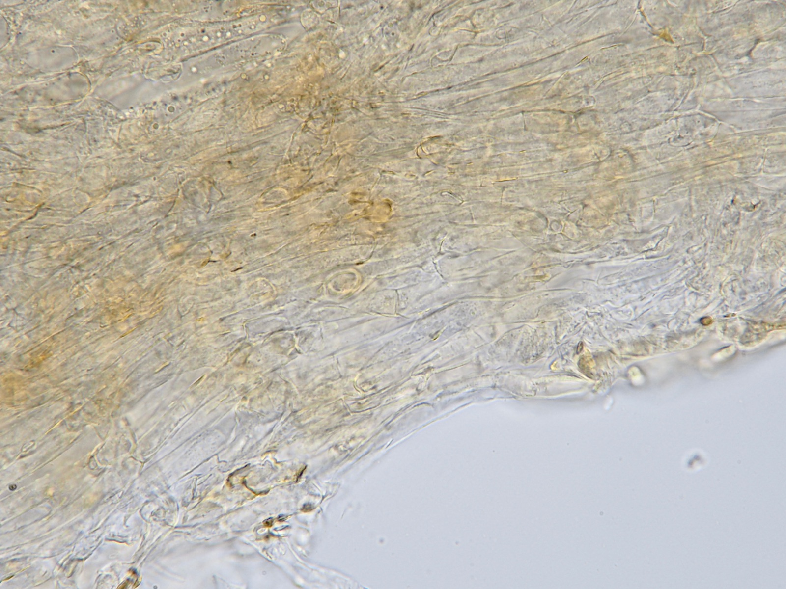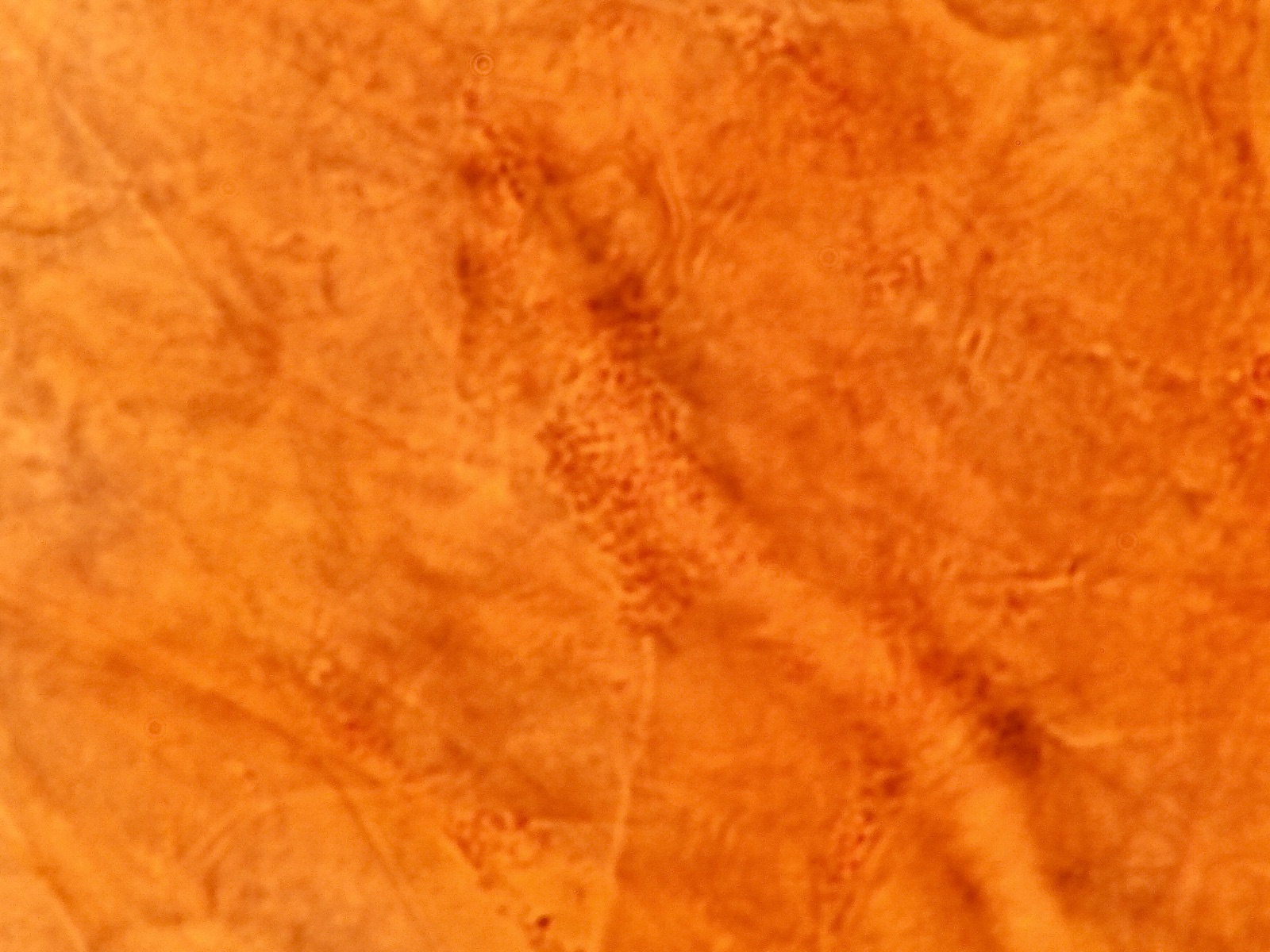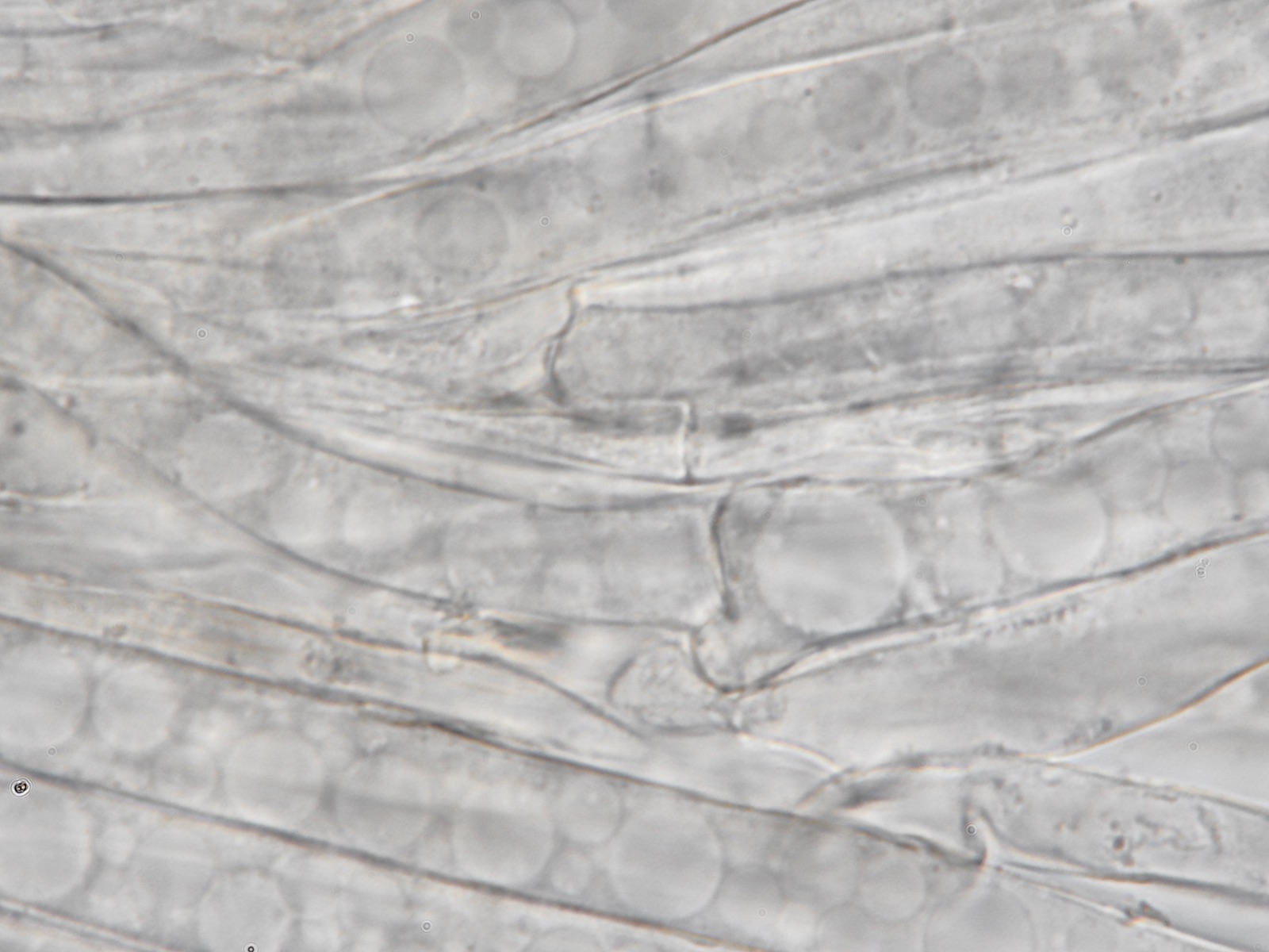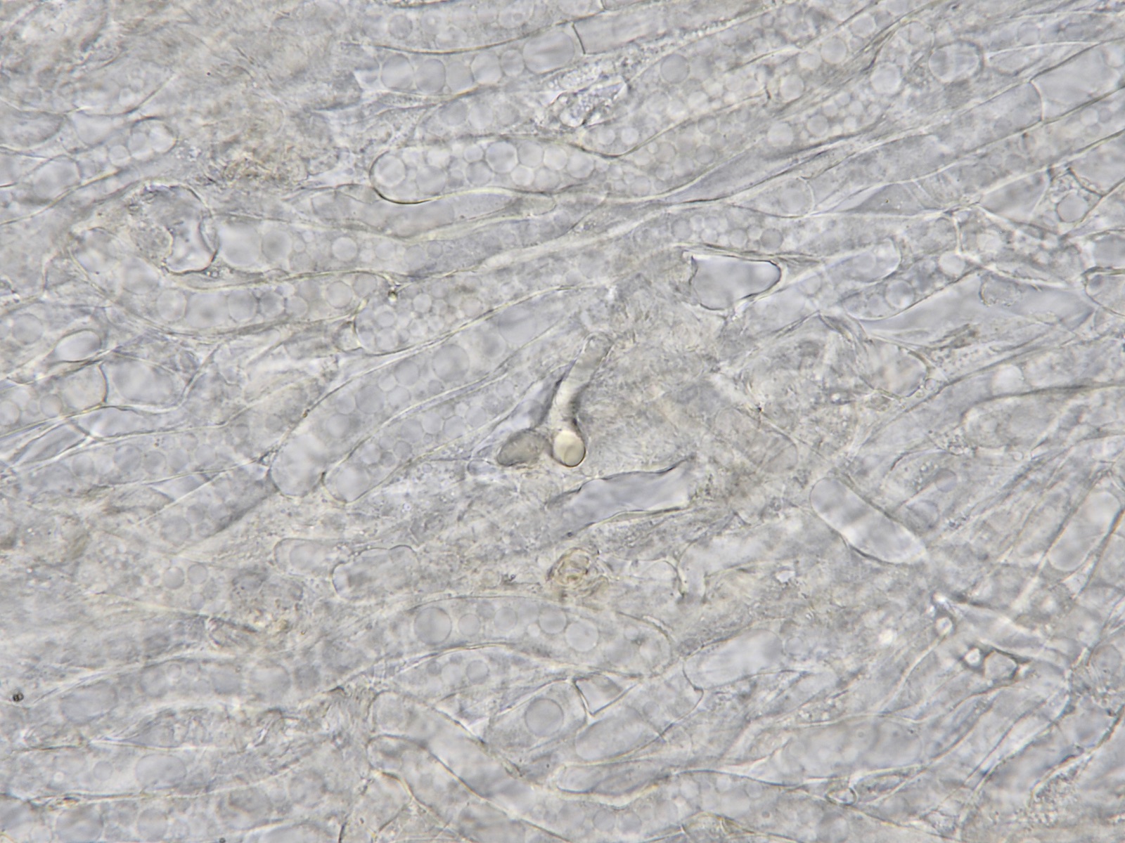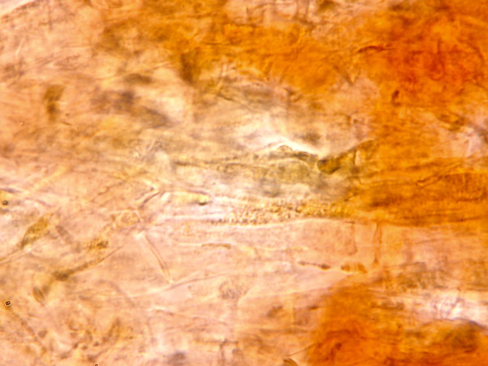 HDS mit parallel liegenden Hyphen, einige Schnallen, hellbraune Pigmente, keine Inkrustationen entdeckt, aber in den Hyphen runde Gebilde, die wie Blasen aussehen