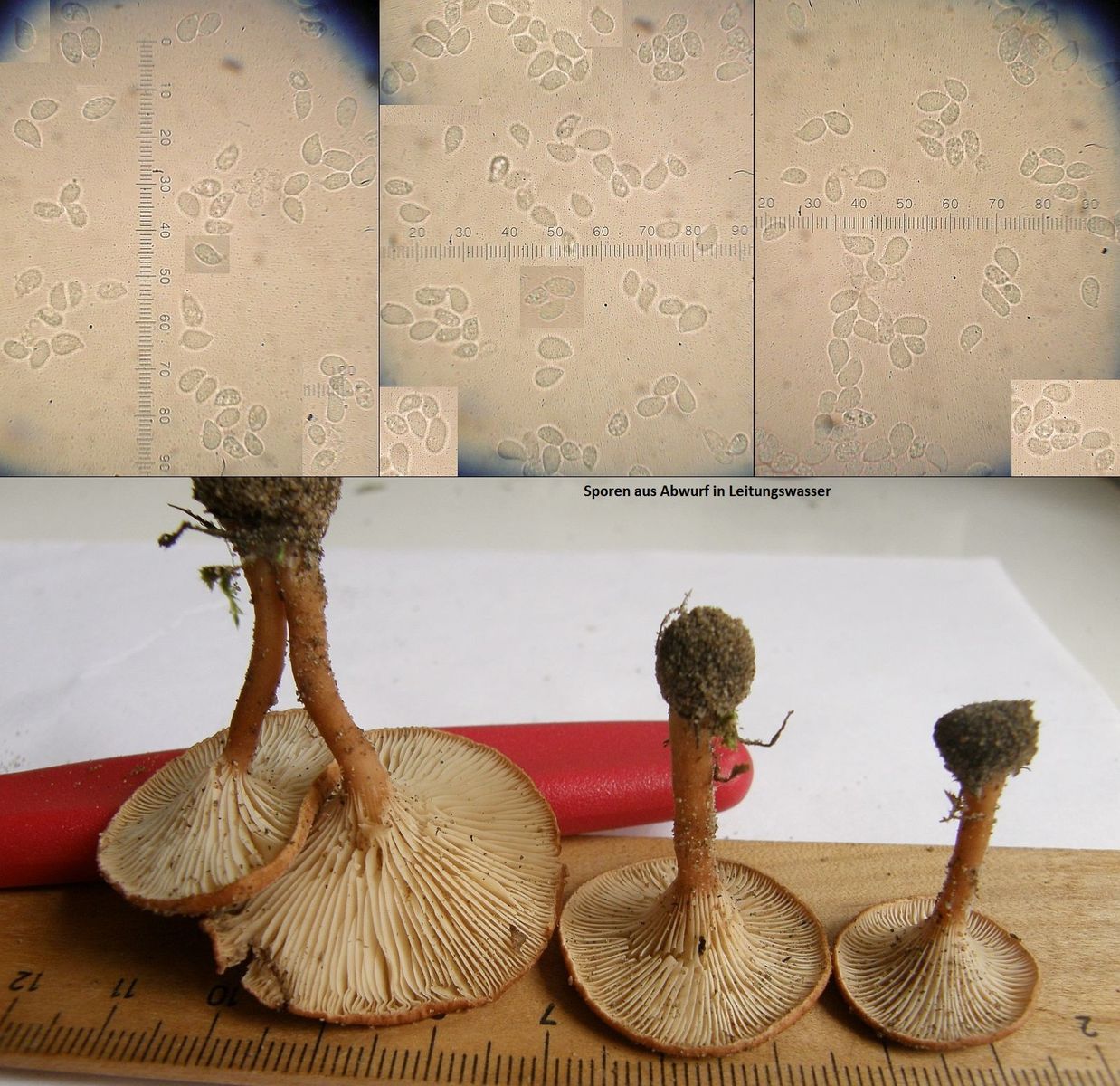 Sporen: Sporenpulver weiß, Sporenform erinnert mich an eine Birne 😄 (siehe Bilder), mit kleinen Tröpfchen, Länge 6,6-8,4 Mikrometer, Breite 4,5-5,0 Mikrometer