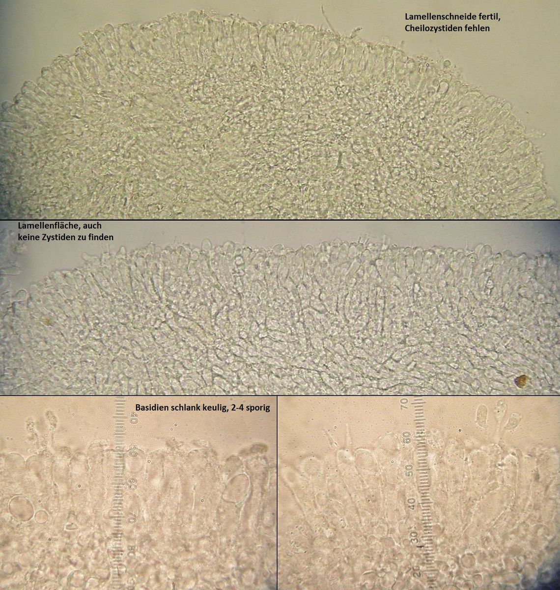 Basidien 4-sporig, keine Zystiden beobachtet