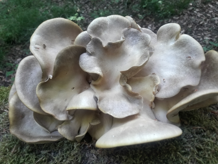 Dann noch schöne Seitlinge, auf Buche oder Eiche. Sie rochen pilzig und nicht nach Anis. Vielleicht so in Richtung Sommeraustern, haben aber schon bessere Zeiten gesehen, waren leider nicht mehr so schön.
