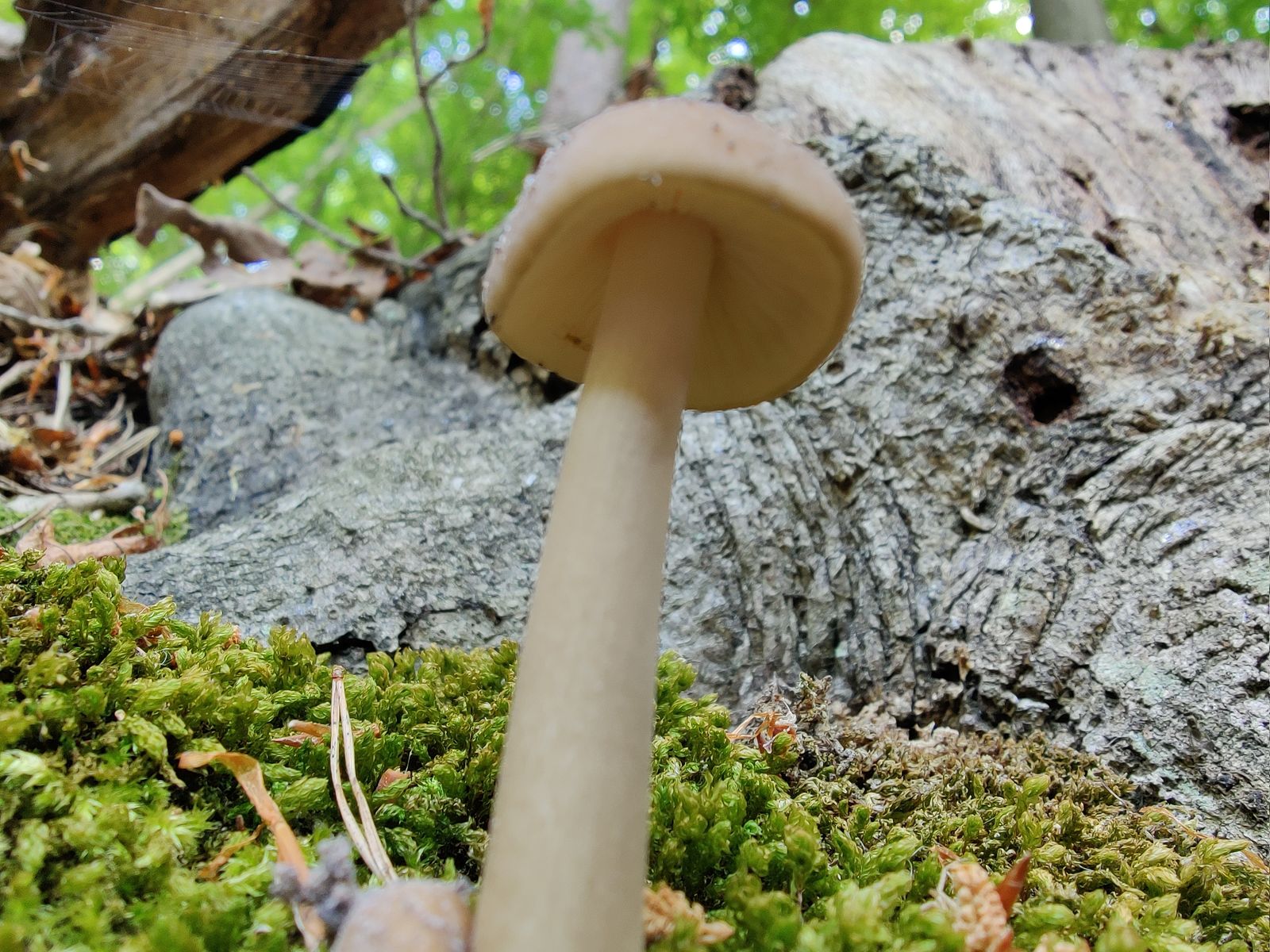 Gefunden wurde der Pilz in einem Mischwald mit Buchen, Eichen, Kiefern und Birken. Der Boden ist eher sauer, da viele Heidelbeersträucher wachsen.