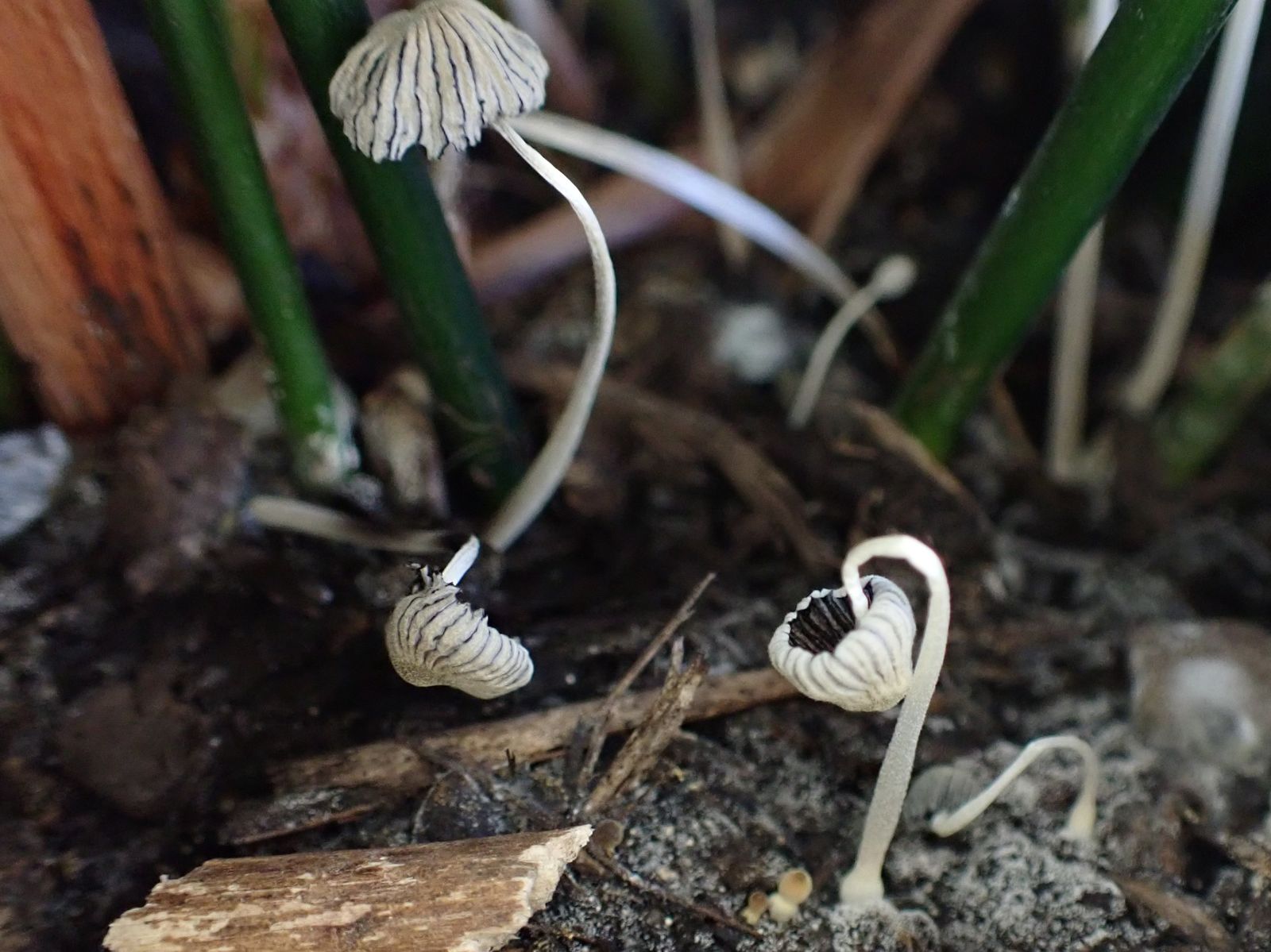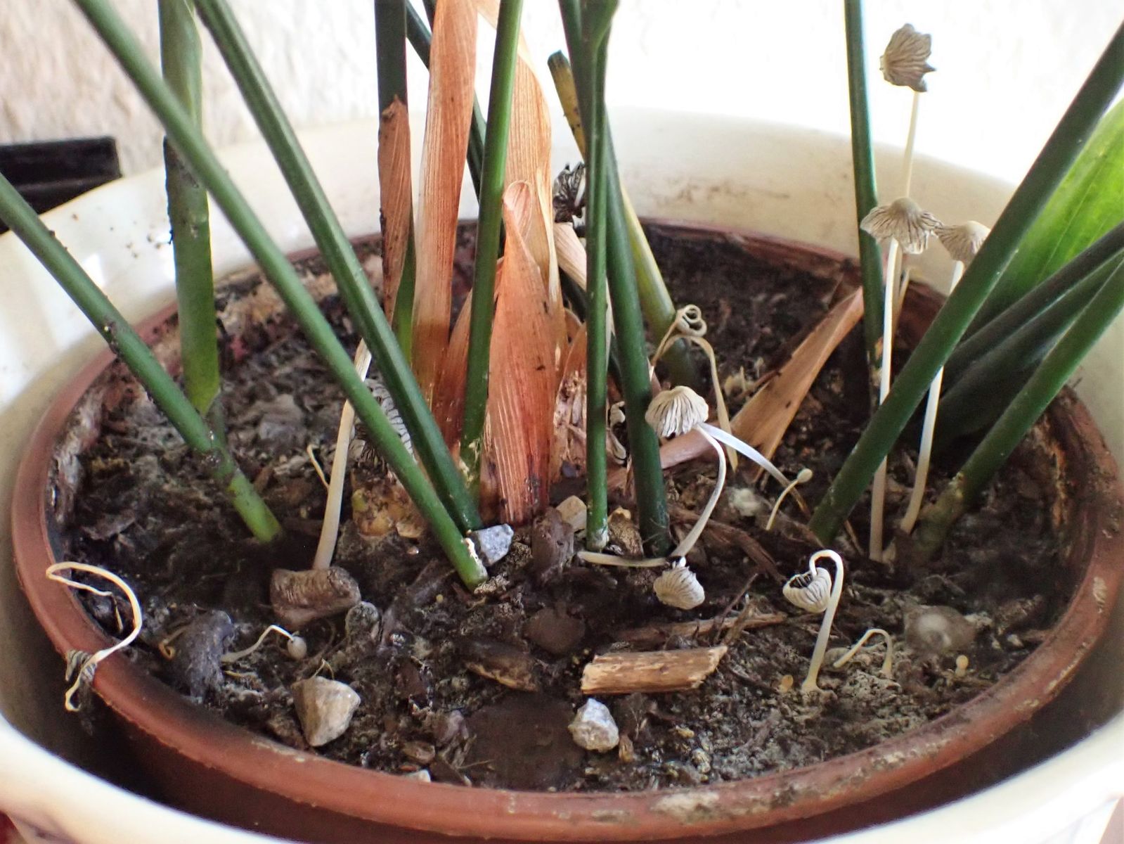 diese kleinen Pilzen wuchsen bei Aspidistra im Blumentopf.