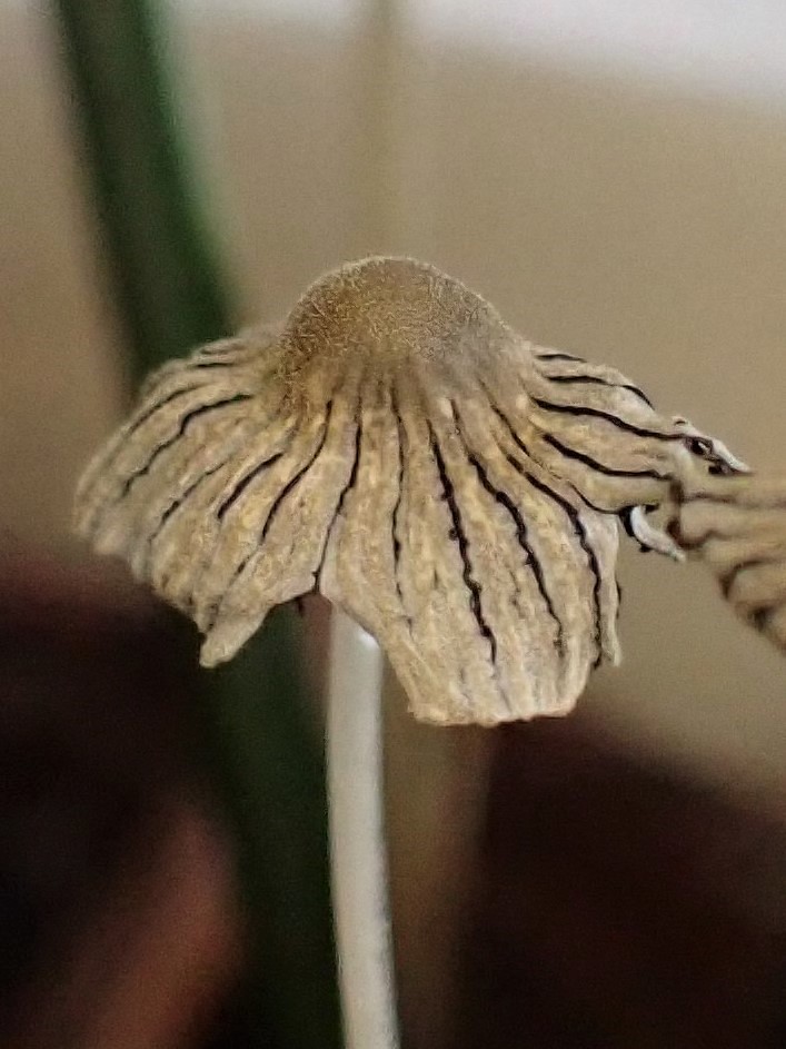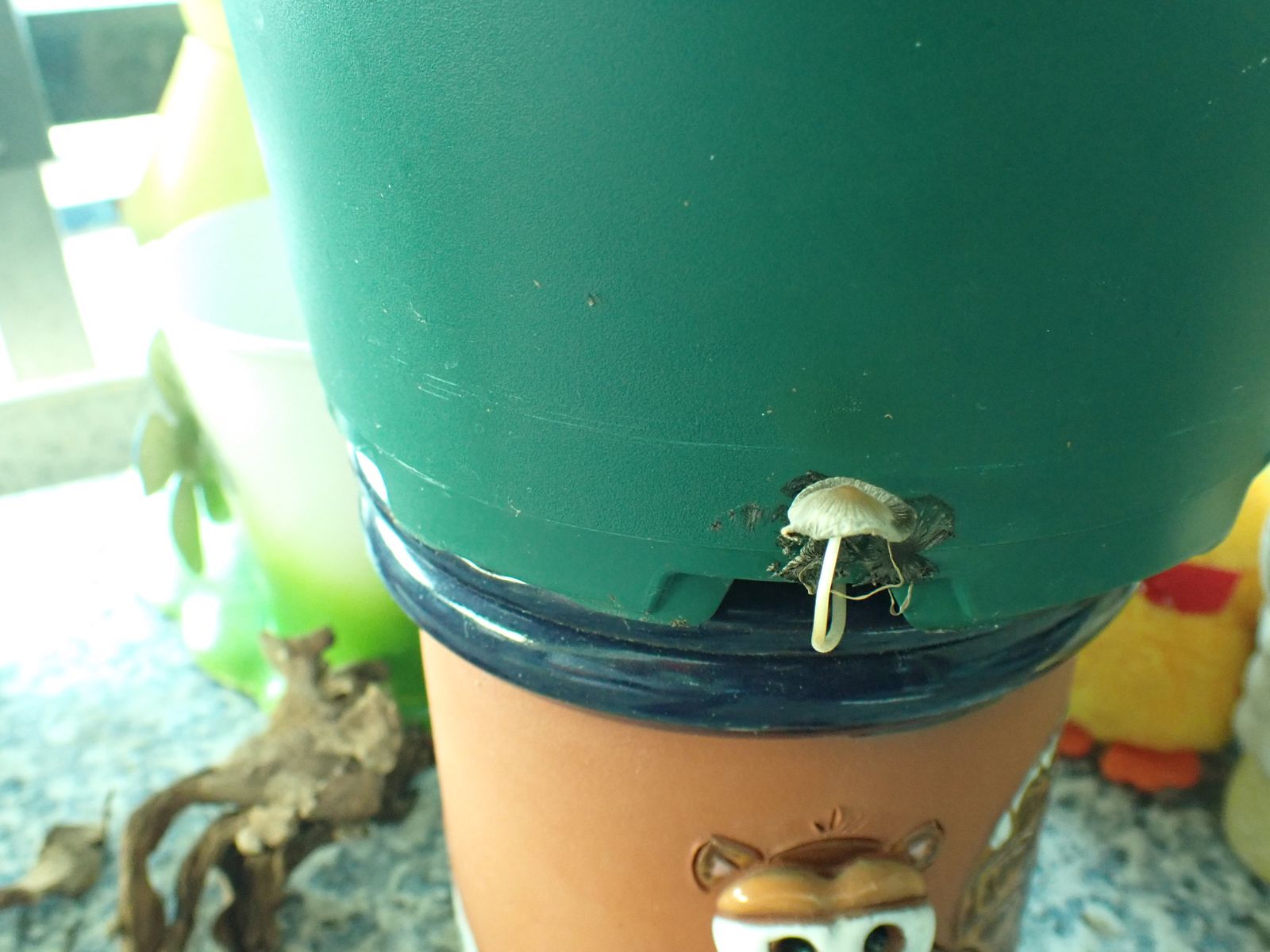 "Morgens da, Abends weg", Pech gehabt. Erst nach drei Tagen habe ich überrissen, dass der Pilz weiter FK entwickelt, die vorangegangen klebten als 'Schatten' noch am Blumentopf,