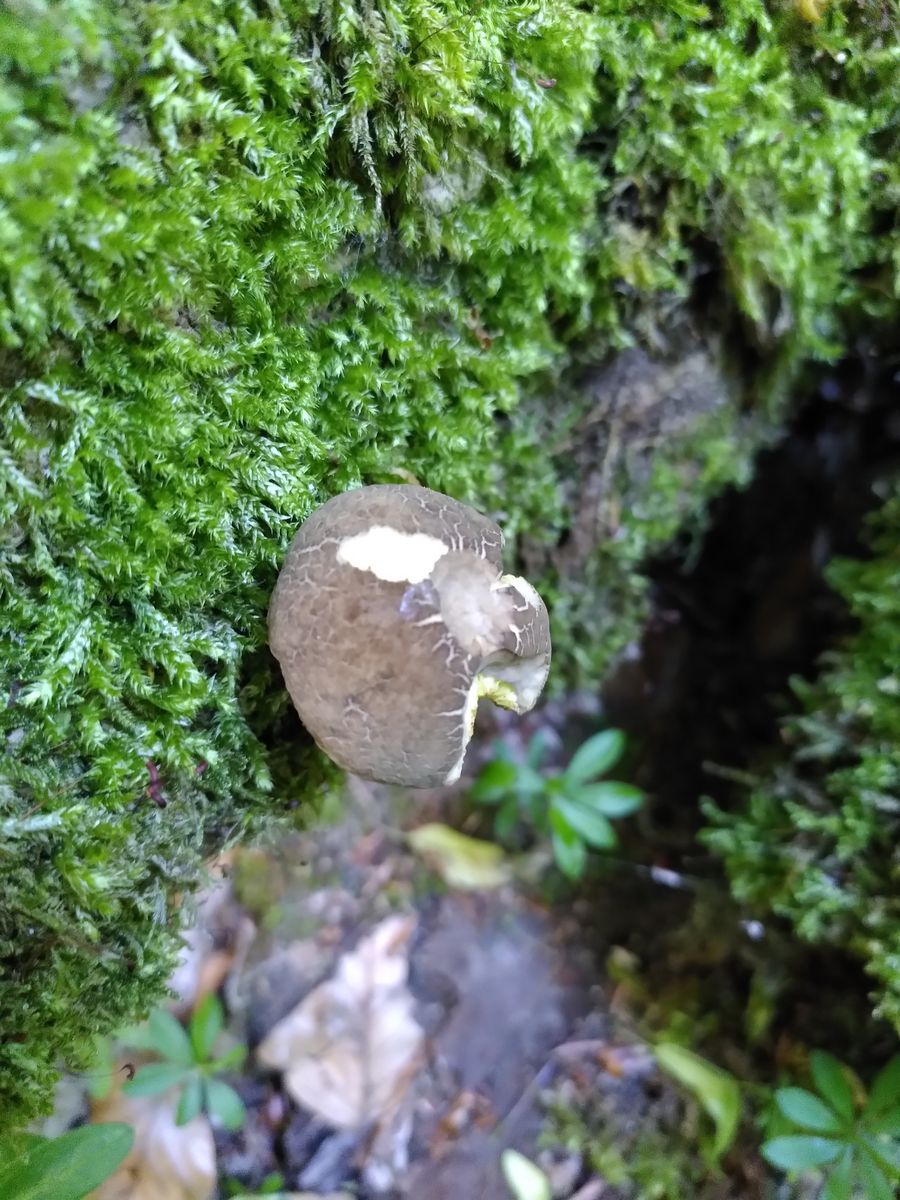 Myzel an Stielbasis: Keine Myzelfäden erkennbar, Stielbasis direkt mit Totholz verwachsen.
