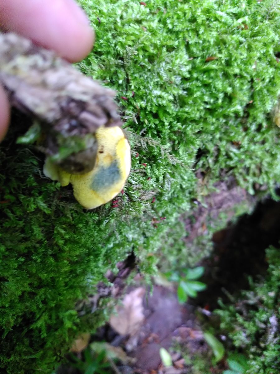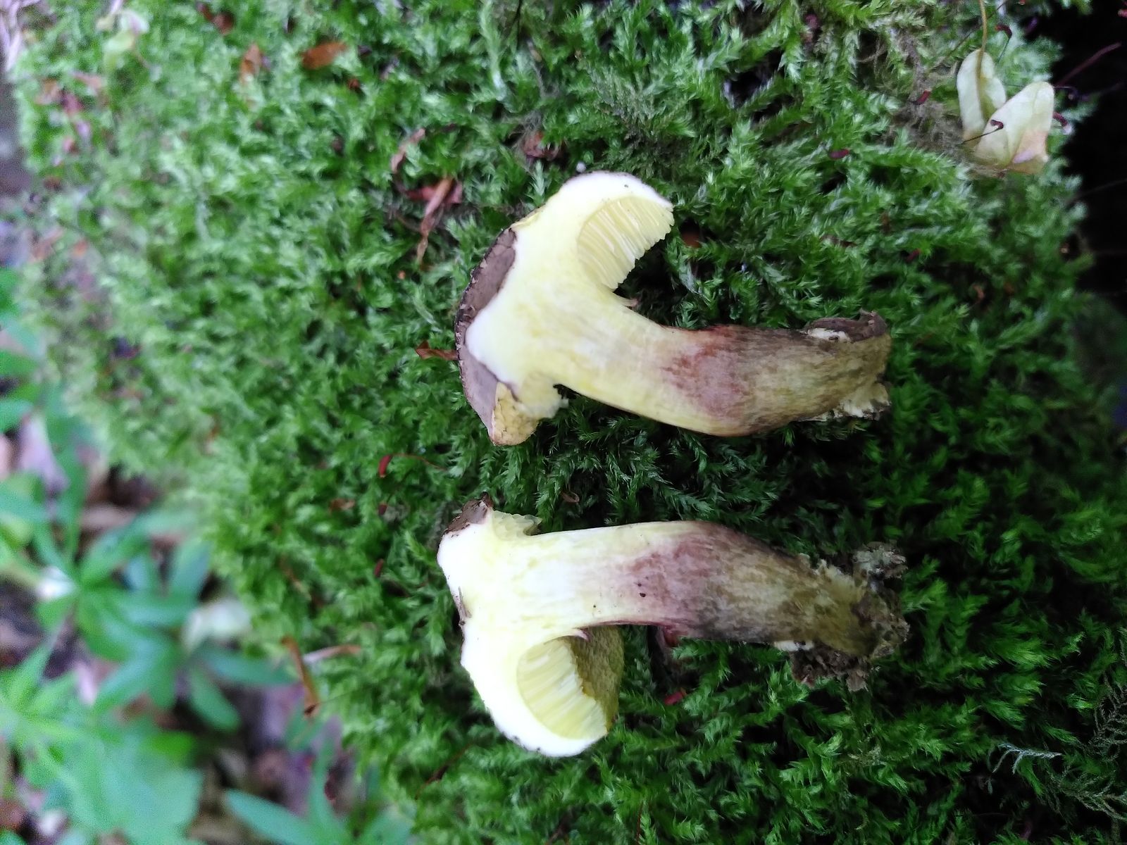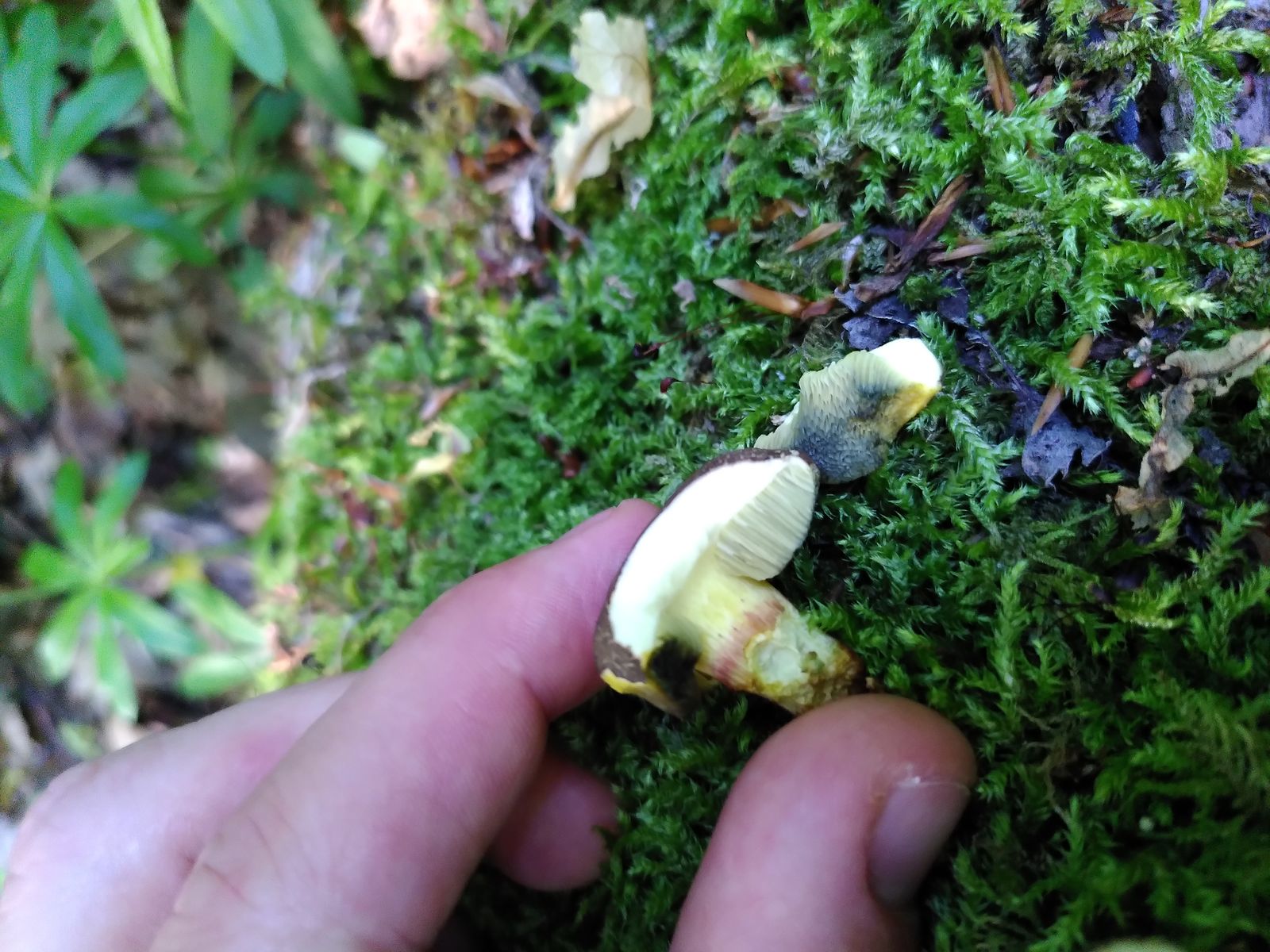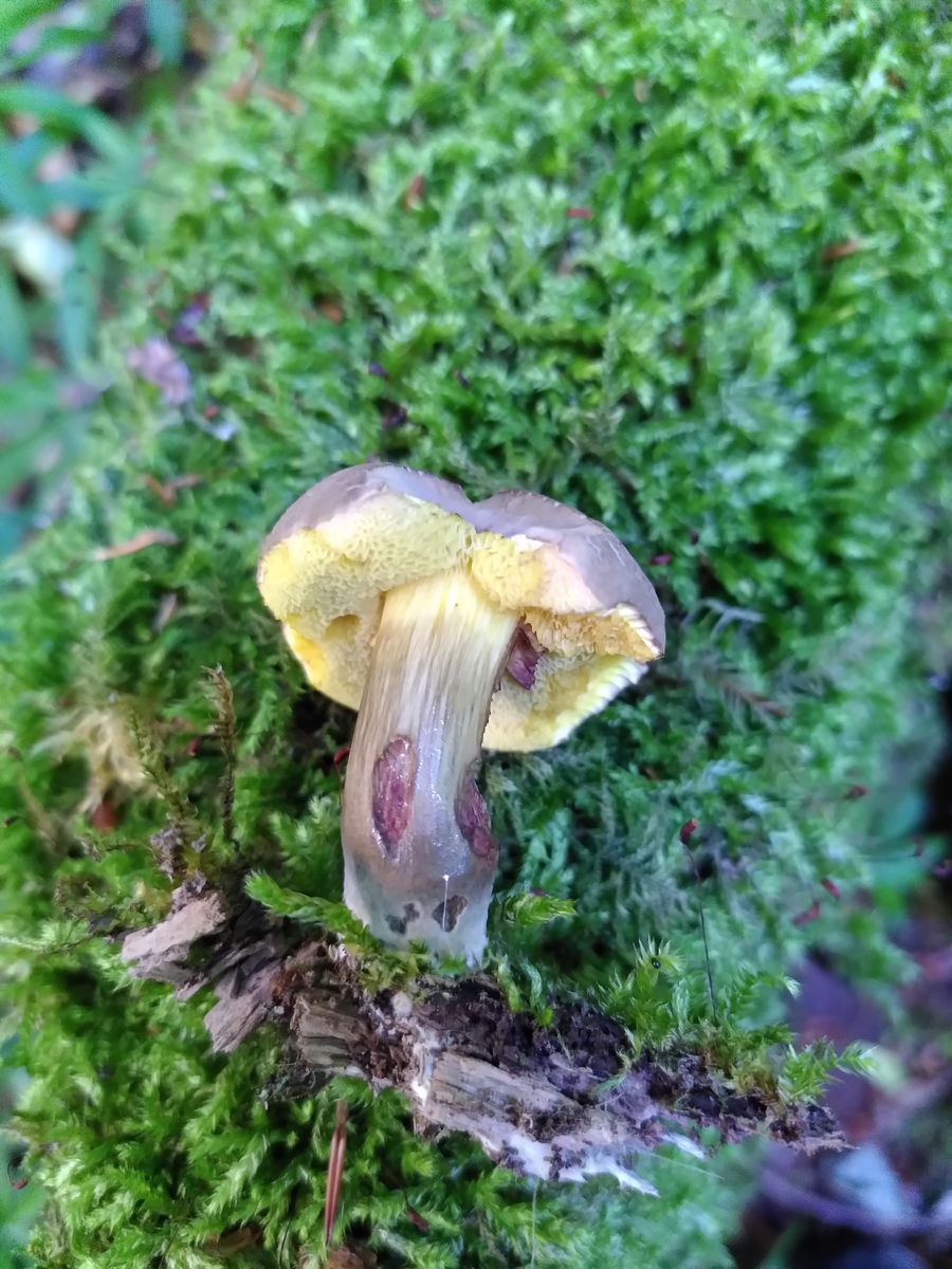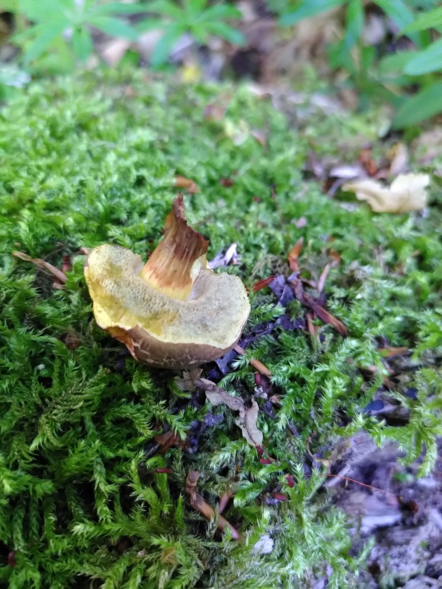 Ich habe heute den folgenden Röhrlingsfund makroskopisch als Xerocomellus porosporus bestimmt. Sagt mir doch bitte mal, ob das alles so seine Richtigkeit hat. Neben dem eigentlichen Fund lag in der Streuschicht noch ein abgerissener Hut, der wohl von der gleichen Art stammt.