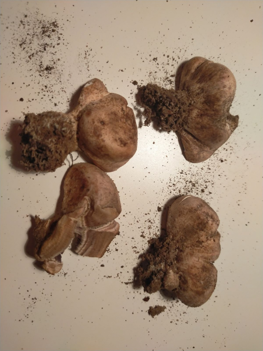 Meine erste Vermutung war Scleroderma verrucosum (Dünnschaliger Kartoffelbovist), wegen der dünnen Peridie, der deutlichen Stielung und weil Häufiges halt häufig ist.