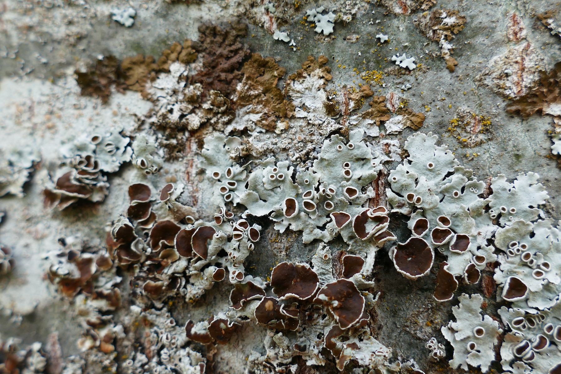 Die beiden Parmelina-Flechten in Bild 3 & 4 besitzen überaus zahlreich Apothecien und fallen deshalb sofort auf.