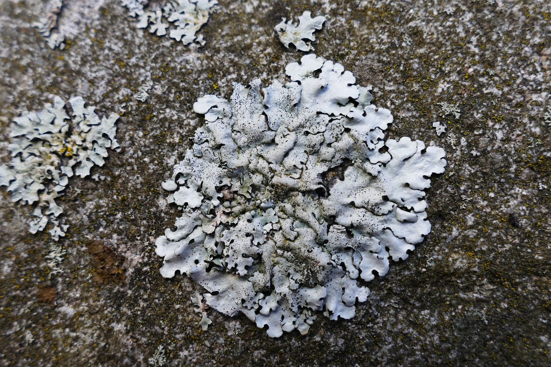 Bild 7 Parmelina pastillifera mit grauen & schwarzen, pillenartigen Auswüchsen (namensgebende "Pastillen") direkt unter einer Esche auf Silikatgestein