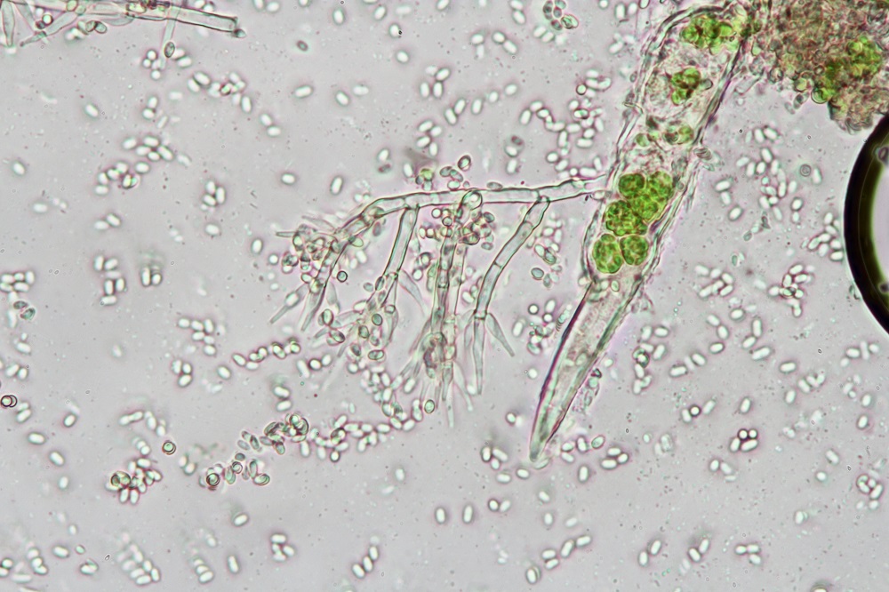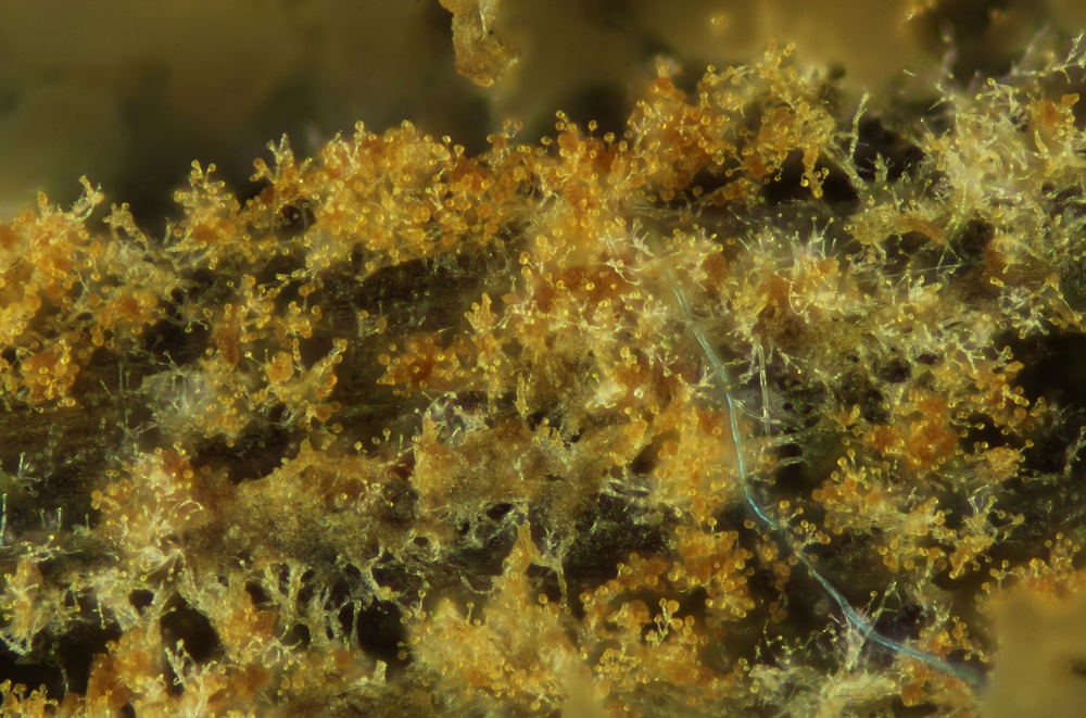 Zuerst dachte ich an einer Clonostachys, aber A. luteoalbus passt durch die Farbe der Hyphen besser.