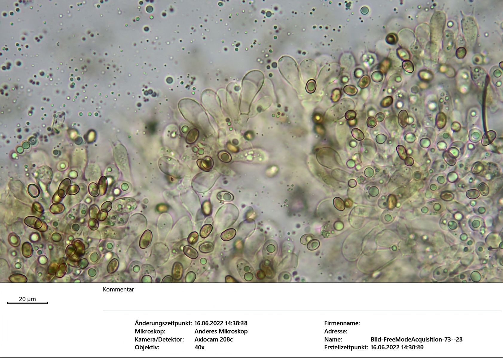 Sporen: 6,4 - 7,7 x 4,4 - 5,0 ; Mittel: 7,0 - 4,8 ; Qm = 1,45