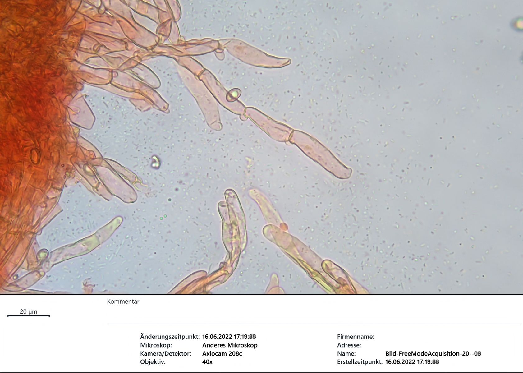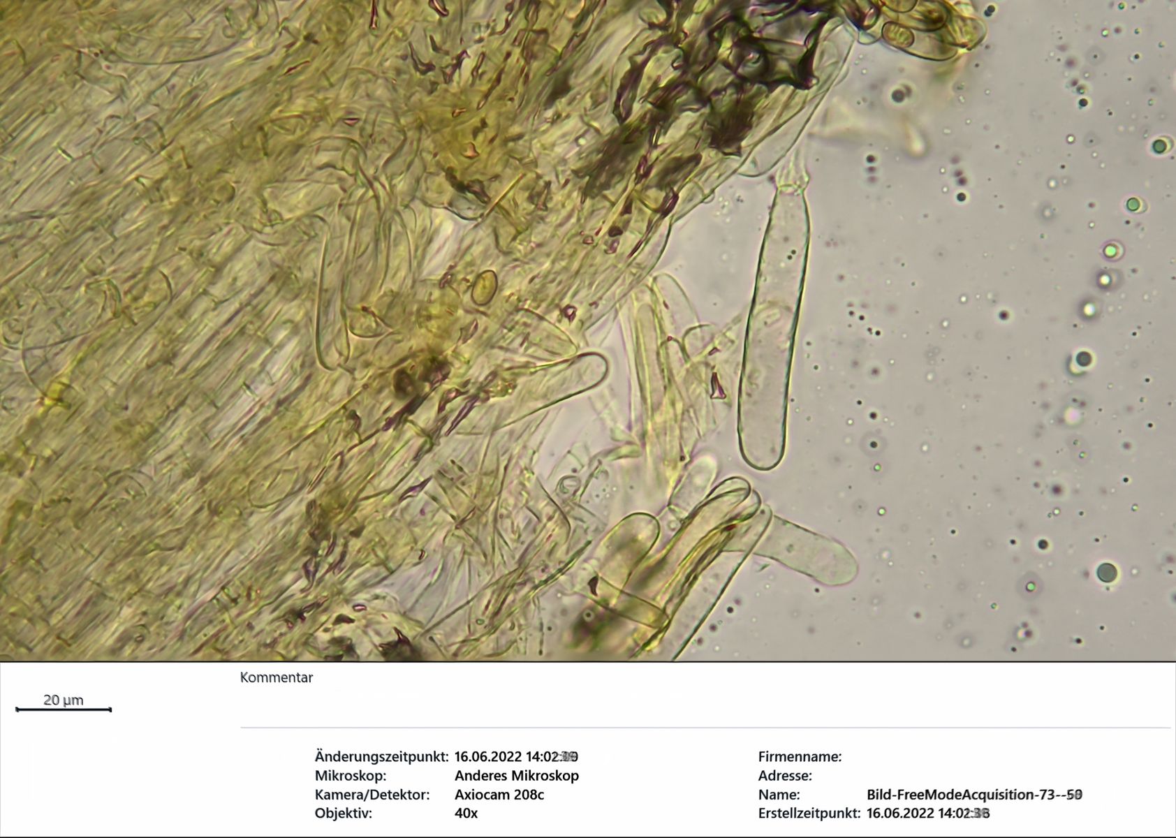 An der alleräußersten Stielspitze sind Kaulozystiden zu finden, wobei ich zuerst noch dachte ich hätte was vom Hymenium erwischt