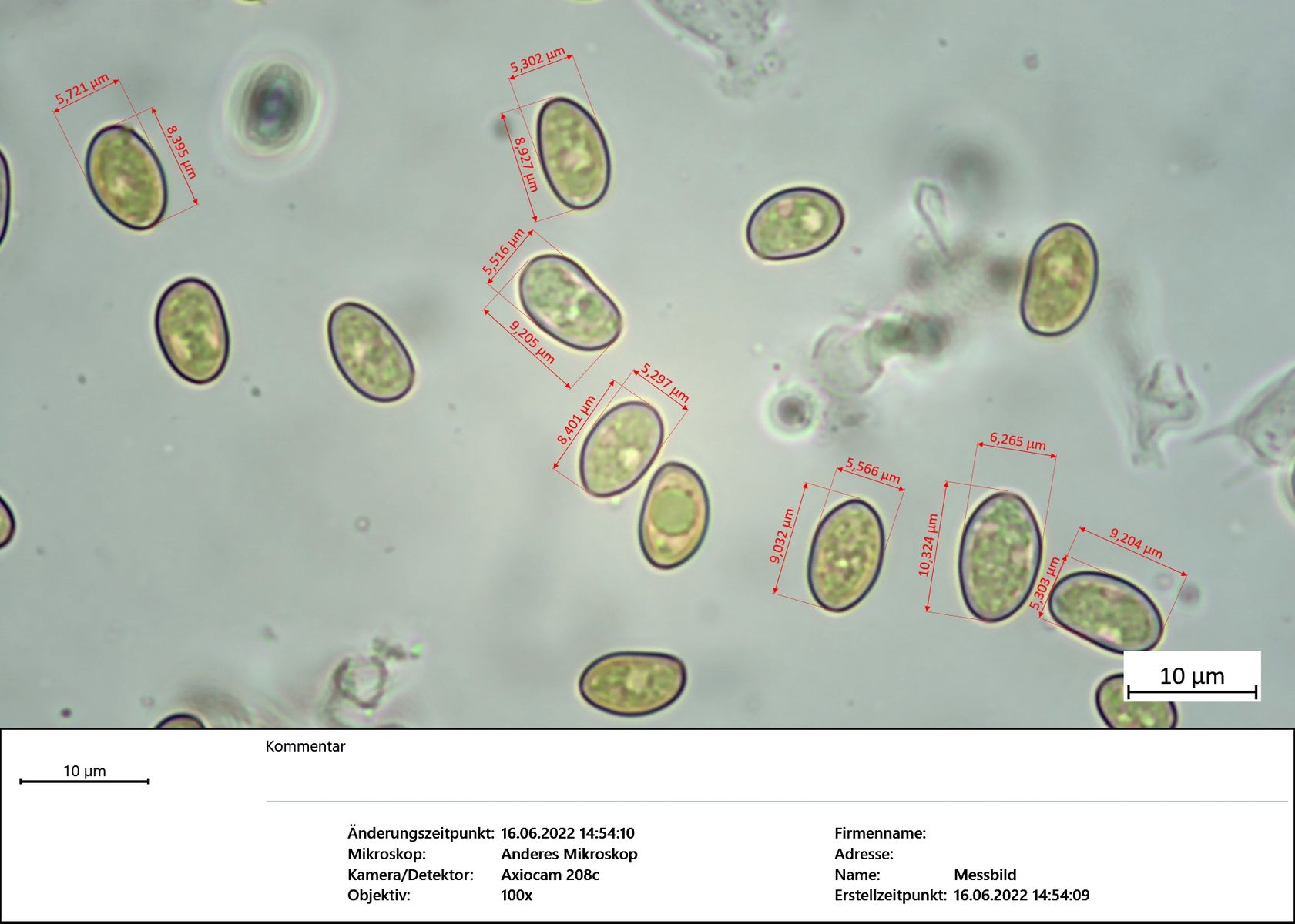 Sporen: 6,4 - 7,7 x 4,4 - 5,0 ; Mittel: 7,0 - 4,8 ; Qm = 1,45