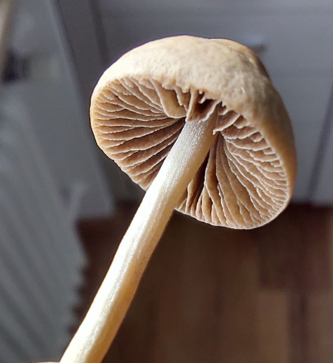 die kleinen, braunen Bestimmlinge mit Lamellen sind ziemlich schwierig. Zur Bestimmung kann ich nix qualifiziertes sagen, aber in jedem Fall sind Lamellenansatz und ein Schnittbild immer sehr hilfreich. Außerdem ist die Sporenpulverfarbe wichtig. Die kriegst du raus, wenn du den Hut abschneidest und mit den Lamellen nach unten einige Stunden auf ein weißes Blatt Papier legst. Es gibt hier auch einen Thread zu hilfreichen Angaben bei Bestimmungsanfragen. Den würde ich dir freundlich empfehlen: