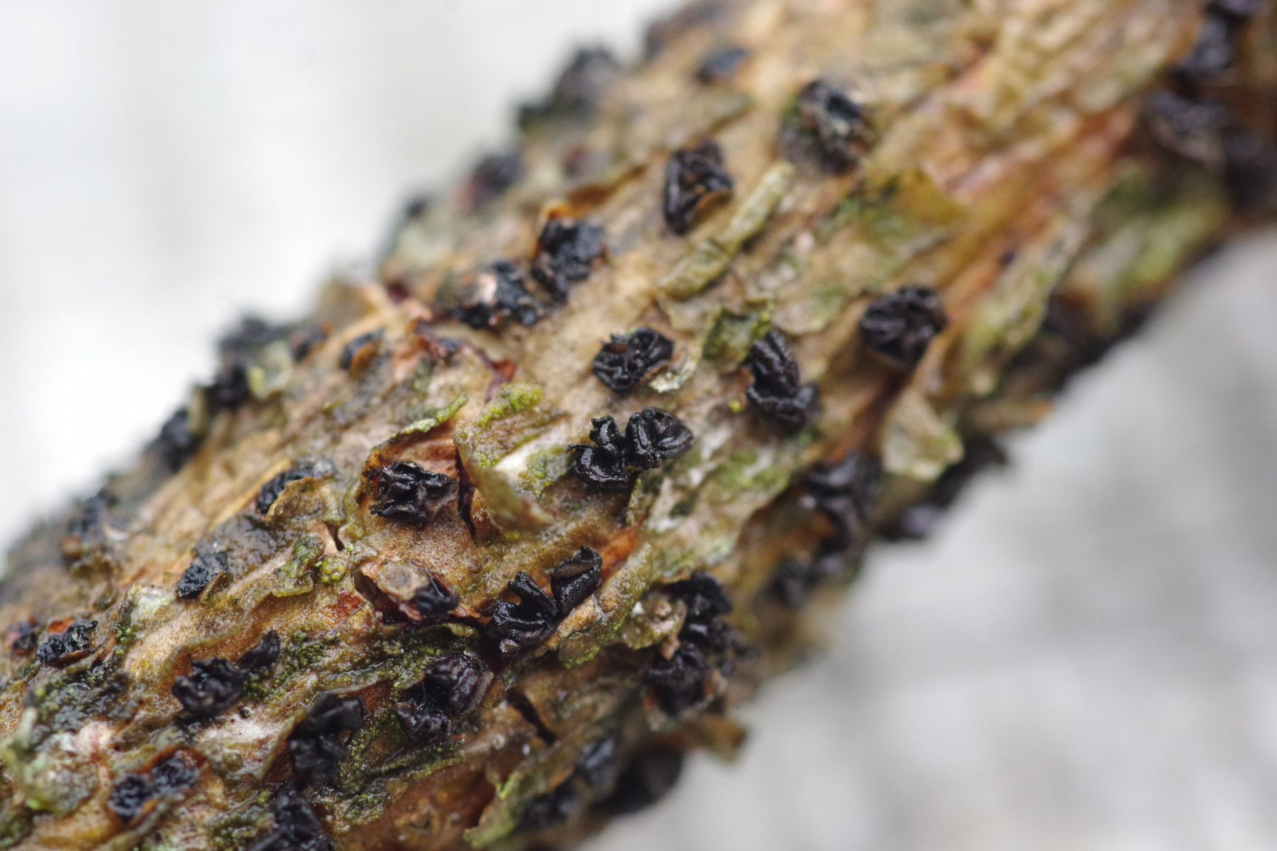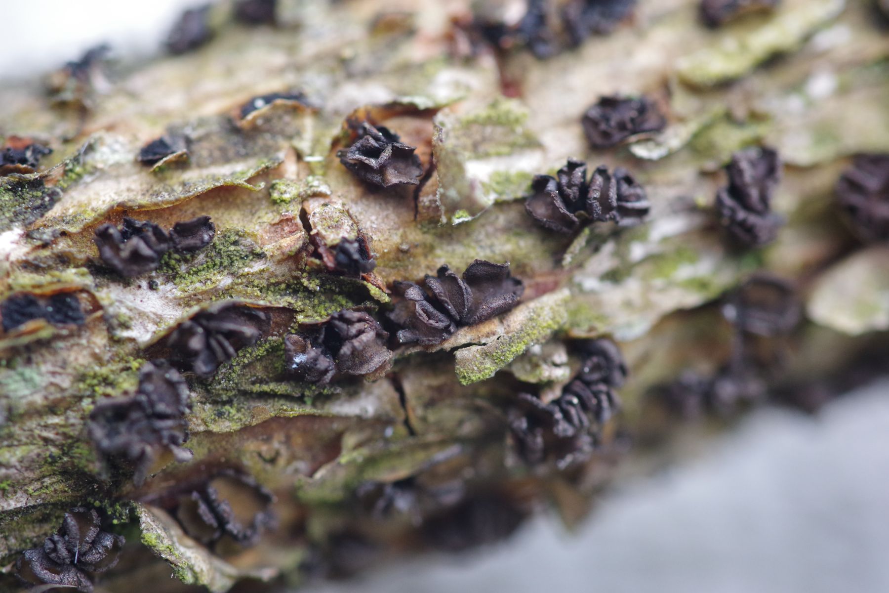 beim Nachlegen am Grillfeuer ist mir gestern dieser Kiefernzweig auf dem Stapel untergekommen, nach dem üblichen Regen (heute sicher wieder oberhalb von 10 mm) sind die Becher wieder ganz frisch. Bilder von "trocken" zu nass. Das scheint ja mal eine Art zu sein, die keinen Doppelgänger hat?