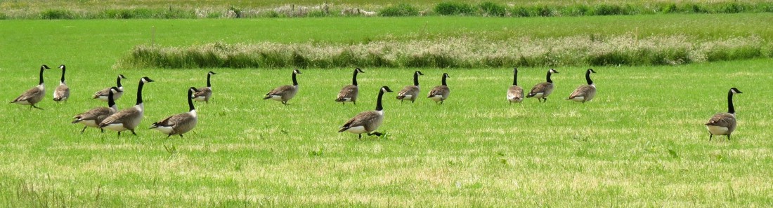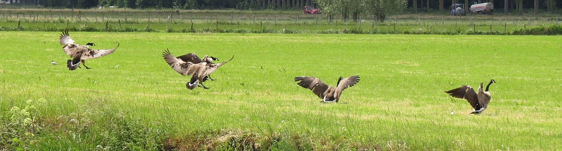 Landeanflug der Kanadagänse (Branta canadensis).
