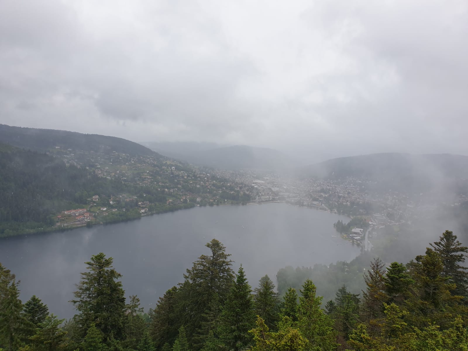 Bild 2 Aussicht auf Gérardmer durch Wolken und Regenschauer