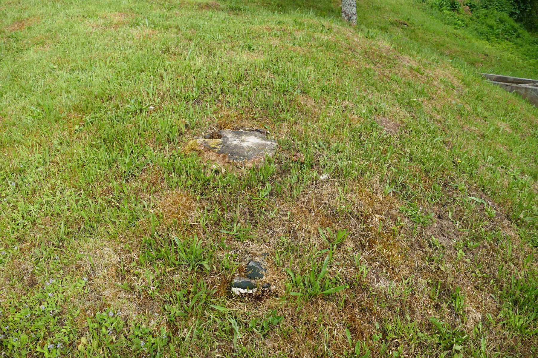 Am Waldausgang in einer Wiese noch ein rätselhaftes Objekt, das sich im Gras versteckte und aus der Wurzel eines Stubbens wuchs.