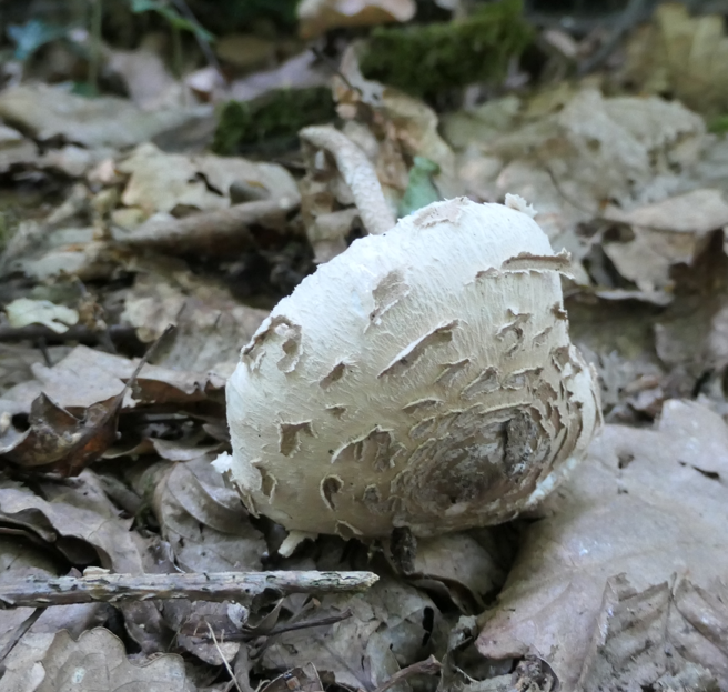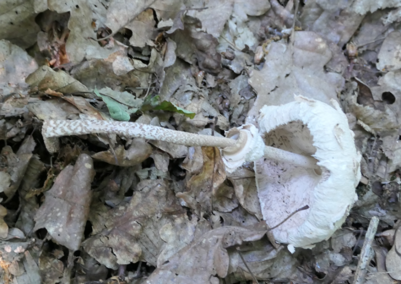 Ja, einen vertrockneten Parasol habe ich tatsächlich gefunden. Der Knollen war noch im Boden, der Stiel war geknickt. Wenn man sich den Ring anschaut, dann muss der Stiel dicker gewesen sein.