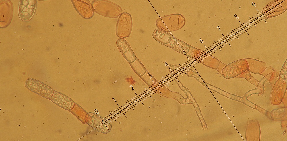 even if some conidia remain unstained, I would still recommend using water instead of congo red (in NH3?) since it is unclear what the chemicals do to the fibrosine bodies or how they change the size of the conidia.