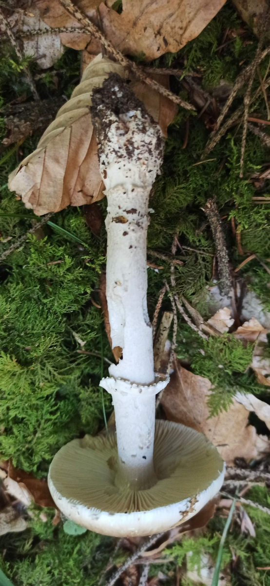 Der eine ist ein Wulstling meiner Meinung nach. Ring gerieft, schmale Rüben artig Knolle mit Velumband, Stielspitze flockig, Huthaut tortenstückartig abziehbar, Geruch könnte ich mir einbilden Richtung Rettich, nicht stark, Fleisch rötet nicht, Huthaut ohne Velumreste, vllcht abgewaschen? Könnte ich Richtung Grauer Wulstling gehen, was denkt ihr? LG