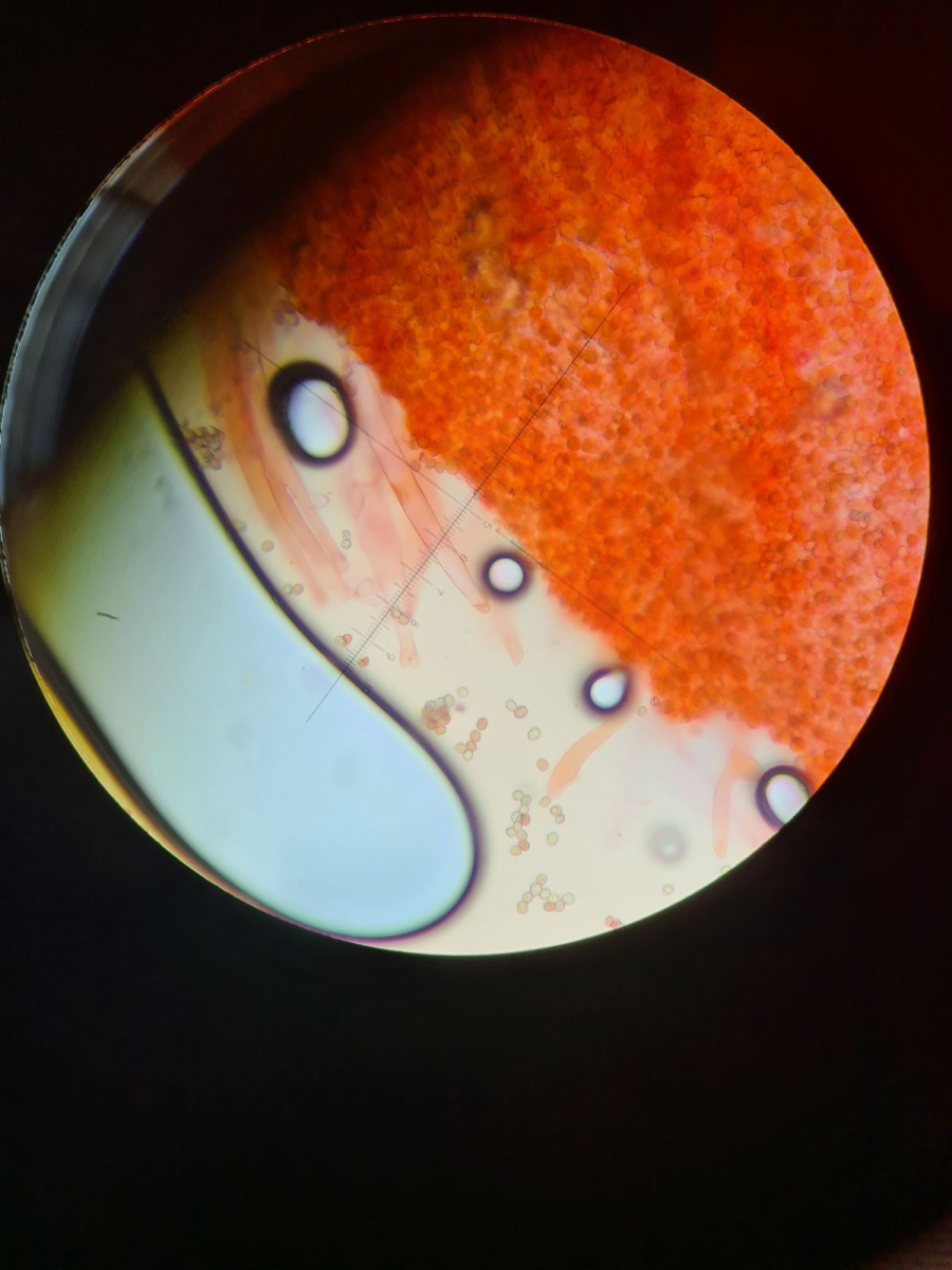 Mit dem Schlüssel, den ich benutzt habe, komme ich zu keinem wirklichen Ergebnis. Spätestens wenn nach der Hutfarbe gefragt wird, bin ich raus, denn die helle Hutfarbe taucht dort dann nicht auf. Eigentlich lande ich auch bei romellii, aber im Schlüssel wird von einer dunklen Hutfarbe gesprochen, die hier nicht vorliegt. Ich bin bestimmt irgendwo falsch abgebogen und/oder habe Fehler bei der Mikroskopie gemacht.