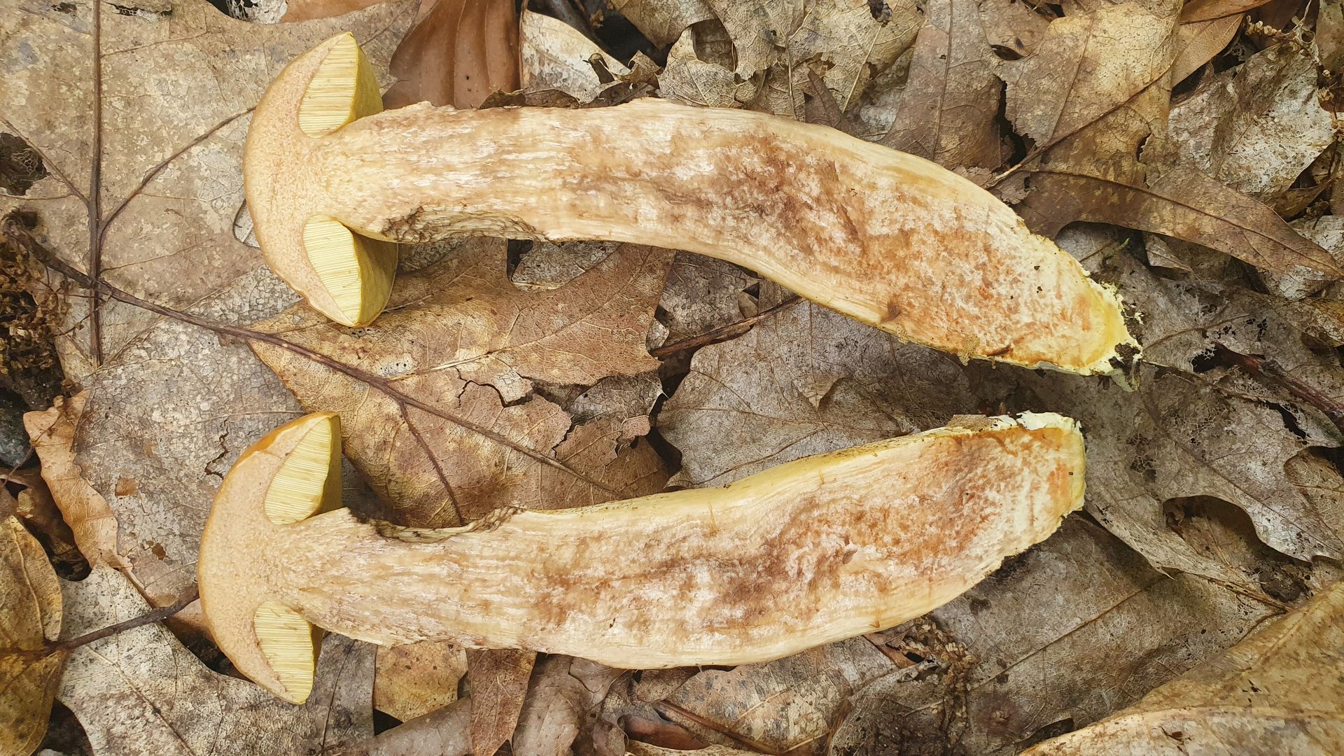 ich habe heute in einem jungen Eichenwald diesen Einzelfruchtkörper gefunden. Von weitem dachte ich an eine Rotkappe, weshalb mich die gelben Röhren schon gewundert haben. Als der Fruchtkörper nach dem Durchschneiden erst rötlich dann schwarz angelaufen ist, habe ich vermutet, dass es etwas Raufuß-artiges sein könnte und tatsächlich gibt es einen Gelbporigen Raufuß, Leccinellum crocipodium. Auch die dunklen Stielschuppen und die verdickte, wurzelnde Basis sprechen für mich dafür. (Das Basismyzel war übrigens gelb. Auf dem Foto wirkt es eher weiß.) Könnt ihr mit meiner Bestimmung mitgehen? Ist diese Art tatsächlich gefährdet?