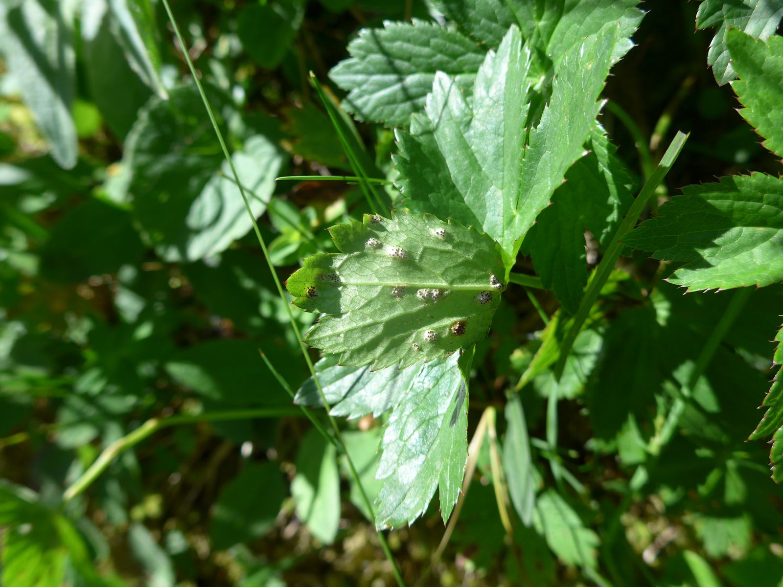 Es gab auch schon erste tolle Pilzfunde, so wie hier Puccinia astrantiae an Großer Sternddolde - Astrantia major.