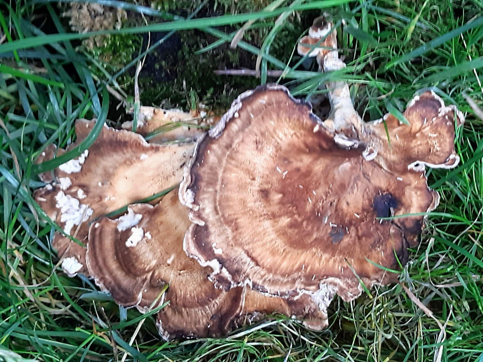 Der Riesenporling zeigt sich wie üblich an bekannter Stelle. Inzwischen stark verrotteter Birkenstumpf, im Vergleich zu den Vorjahren etwas früher als üblich. Die Tatsache, dass hier gerne die Enten rumschnattern, ist ihm anzusehen.