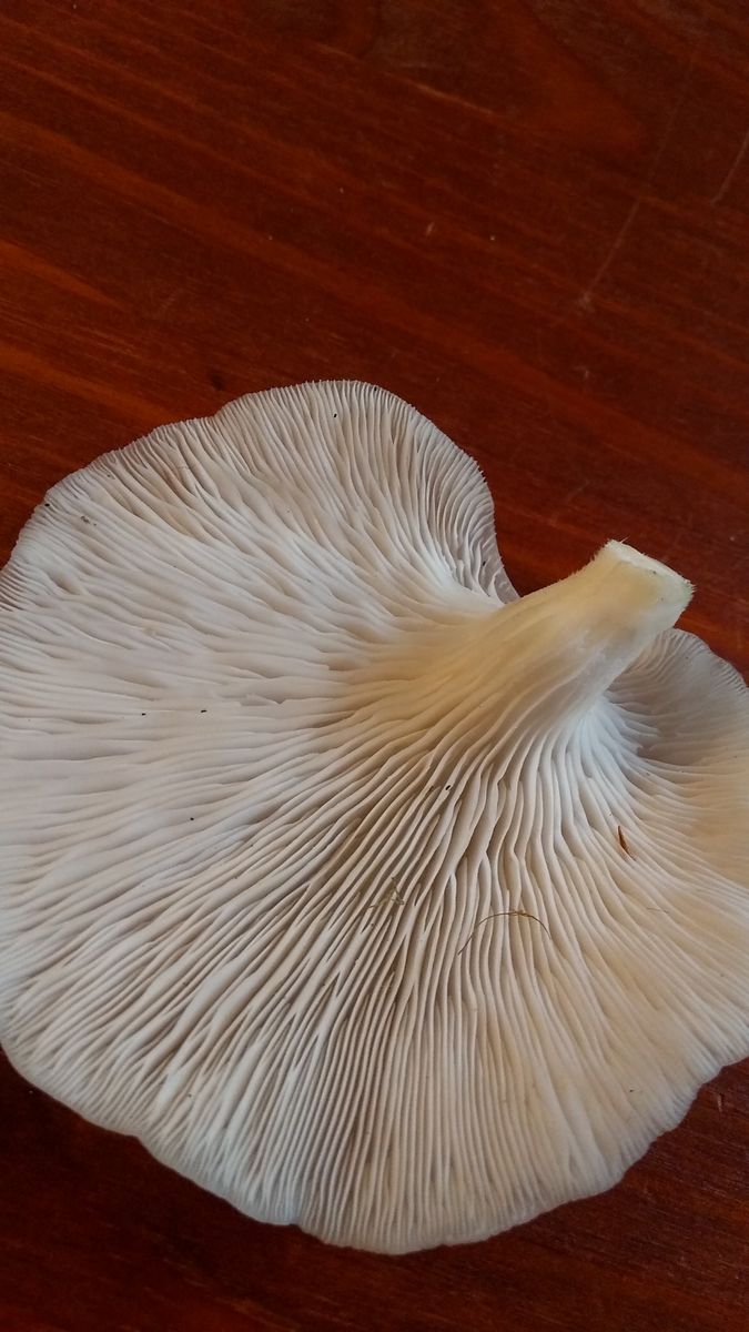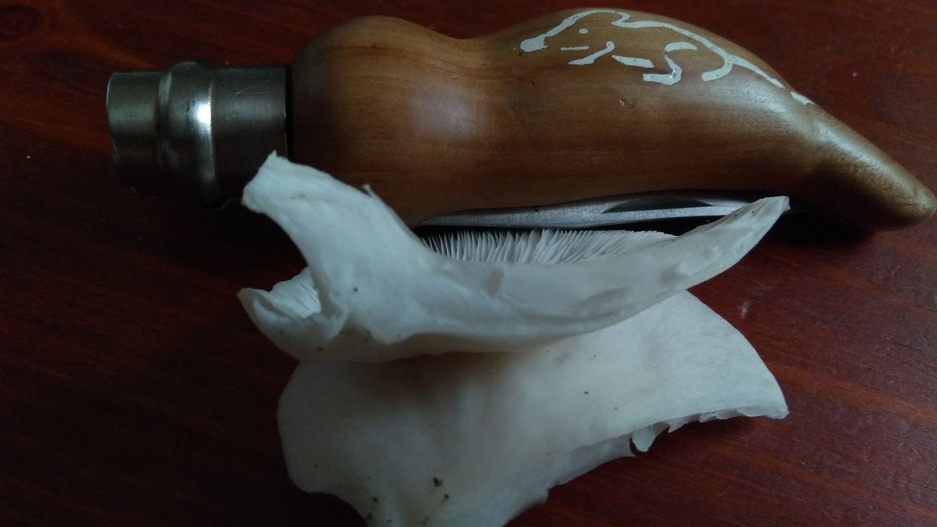 ich habe heute mangels anderer Funde einen Baumpilz mitgenommen, den ich versuche zu bestimmen. Ich habe mich auf Lungenseitling geeinigt. Der Fundort liegt im Mischwald, an einem schon gut verwitterten Ast, den ich nicht eindeutig identifizieren konnte. Totholzbestimmung finde ich noch recht schwierig. Ich vermute Haselnuss, schließe aber auch Kirsche oder einen völlig anderen Laubbaum nicht aus.