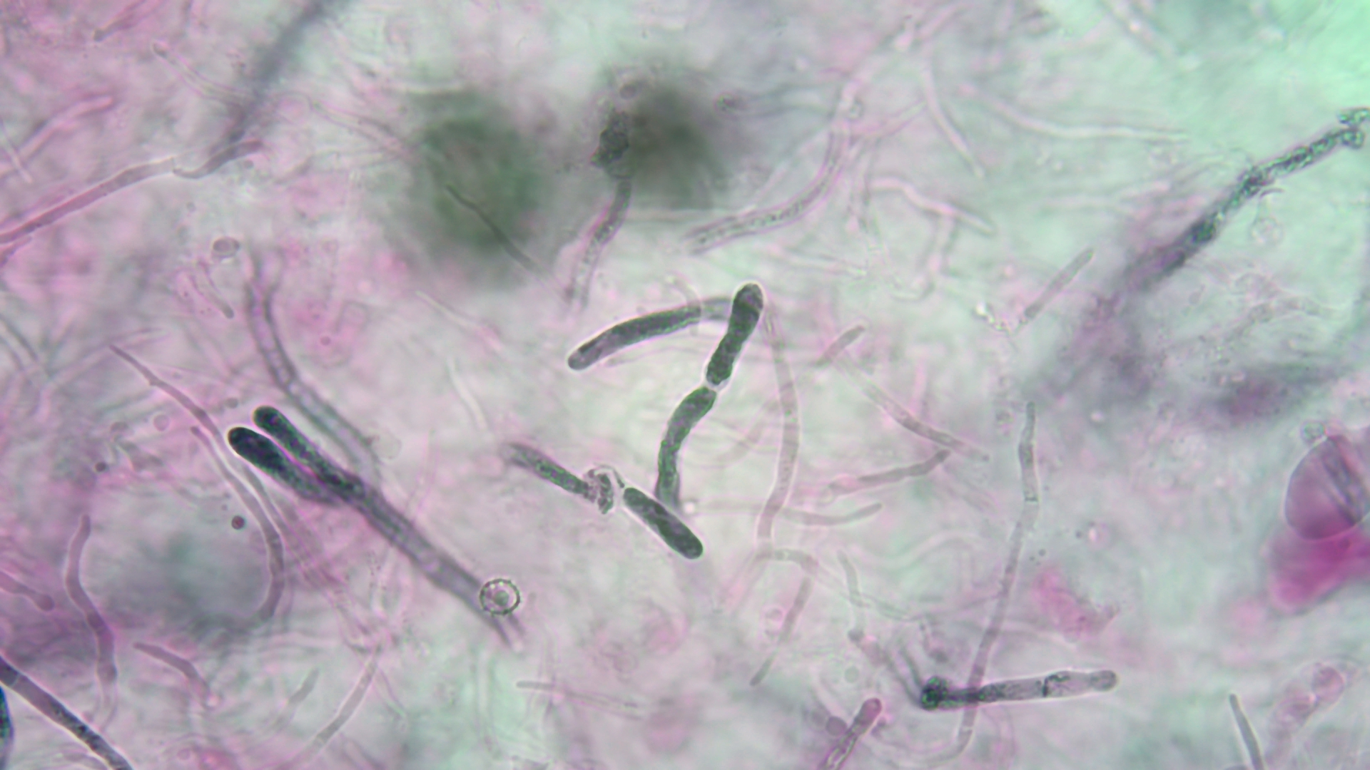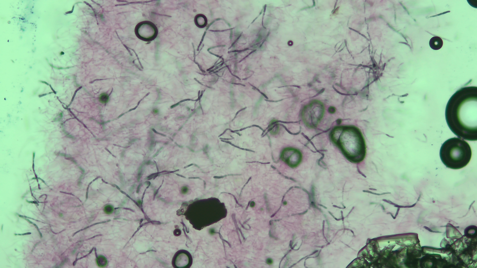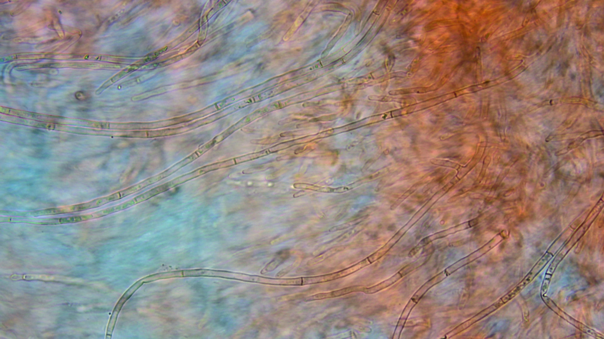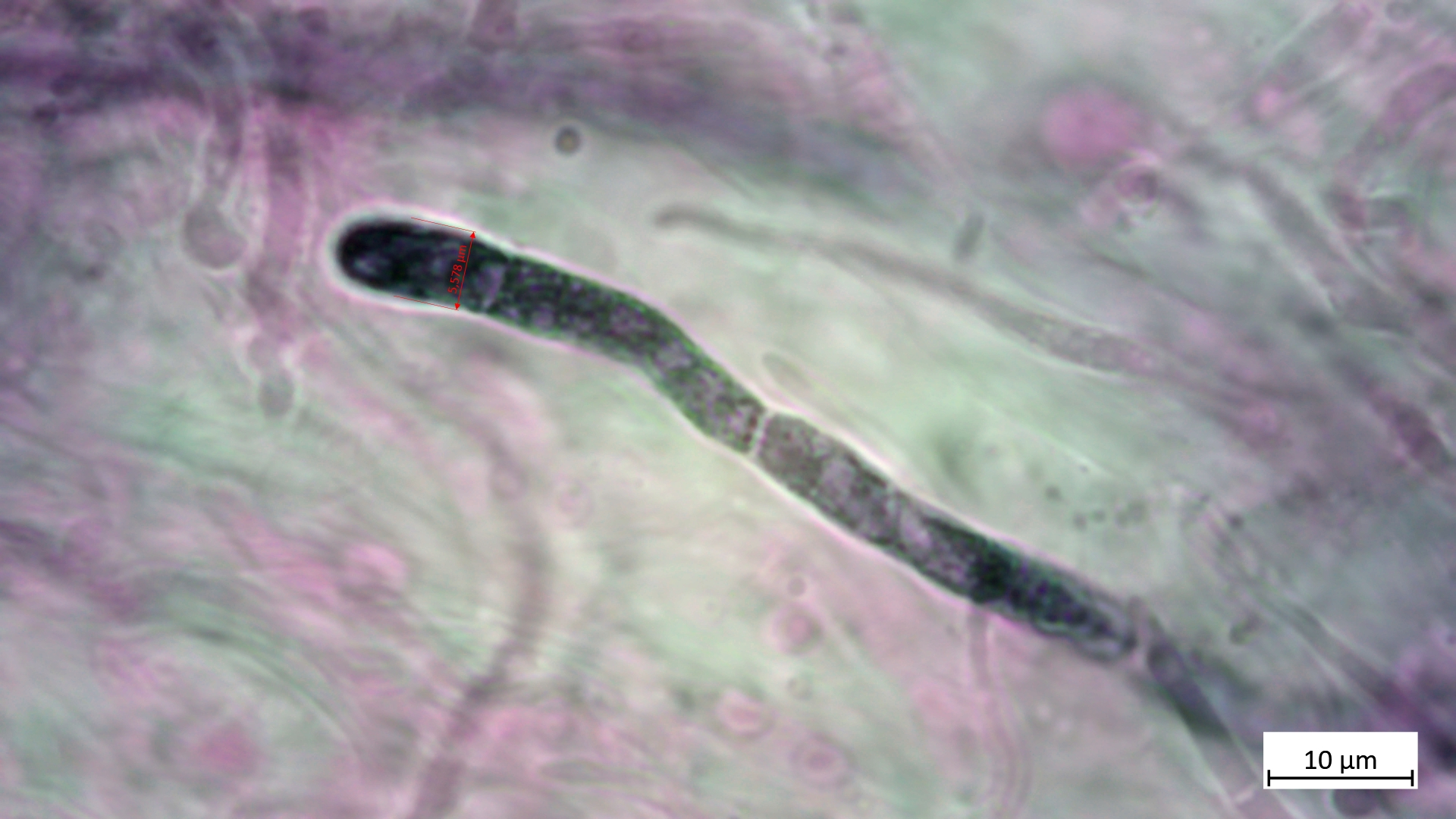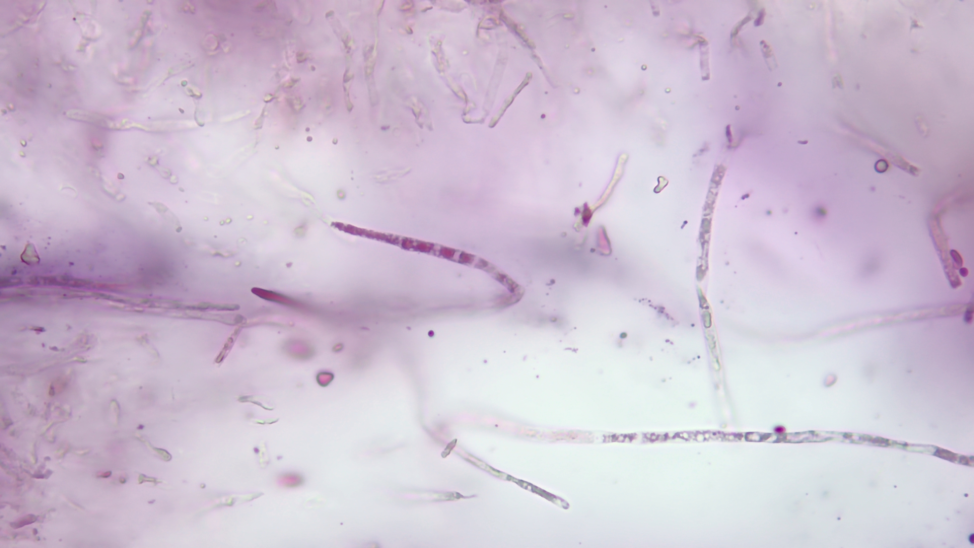 Ansonsten sehr lange, schmale und septierte Elemente in der HDS, hier in Kongorot SDS bei 400-fach (habe irgendwie beim Speichern die Annotation vergessen einzubrennen):