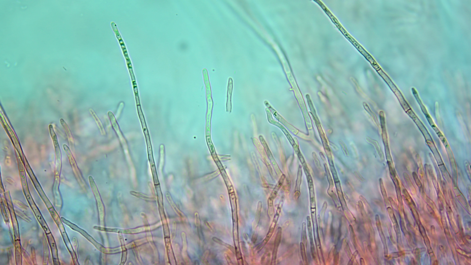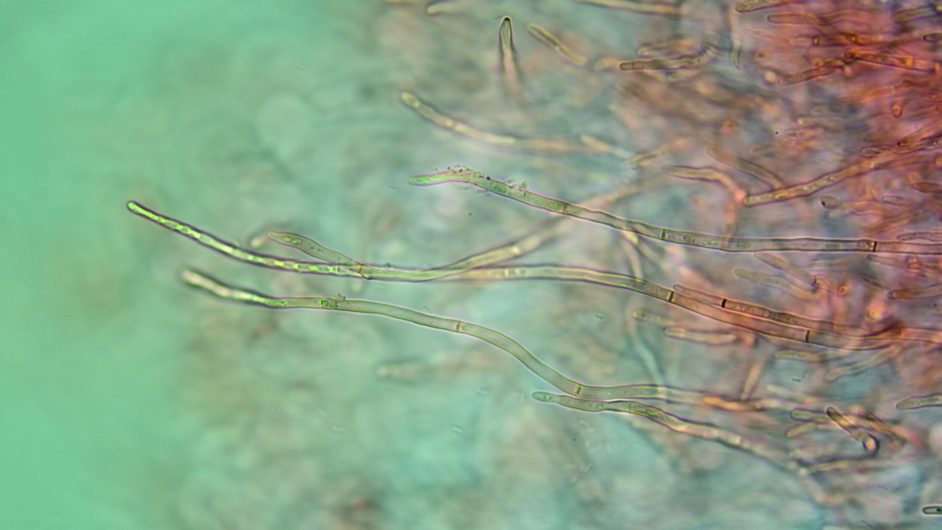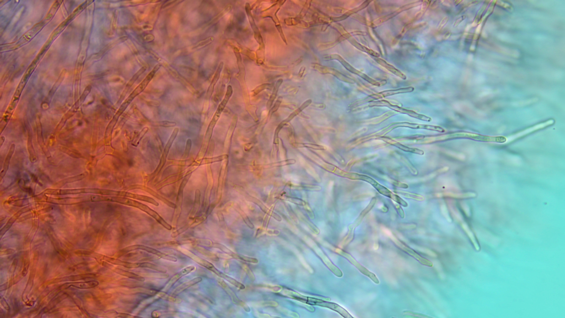 Pileozystiden bereits in Kongorot zu sehen (400fach) ...