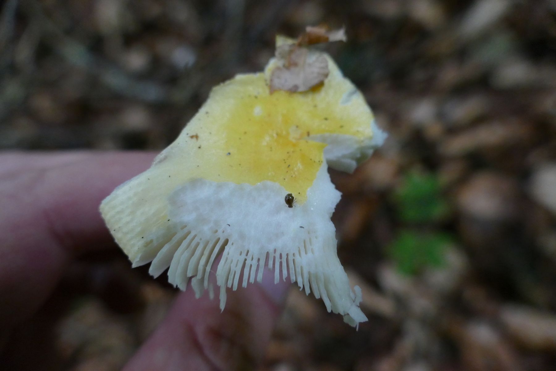 Gefunden zweimal unter Buchen. Schöne kräftig gelbe Hüte, mit gerieftem Rand. Auffallend zerbrechlicher, hohler Stiel mit kleinen aber kräftigen Rostflecken