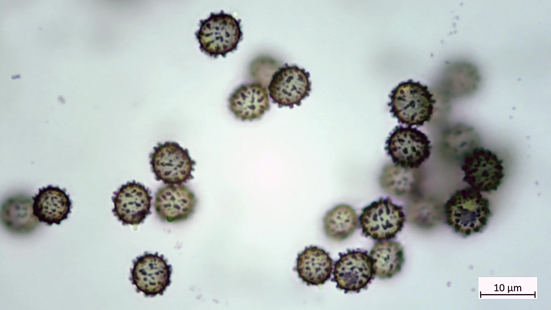 Sporen mit hohen, kräftigen Stacheln, manchmal zusammenfließend wirkend, sonst aber auch entfernt stehend.